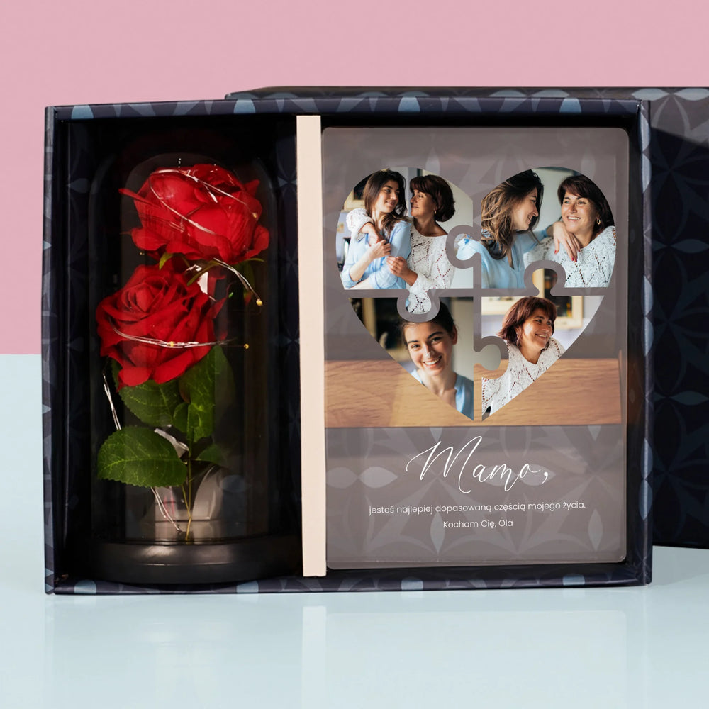 Fotokolaż: Puzzle Serce Dla Mamy - Zestaw prezentowy z wieczną różą