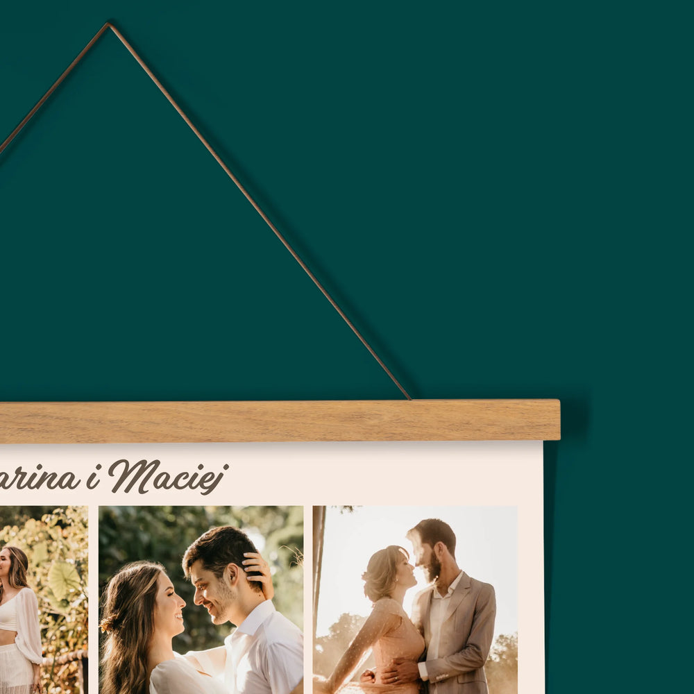 Fotokalendarz umieszczony w drewnianych listwach z wybranymi przez Ciebie zdjęciami.
