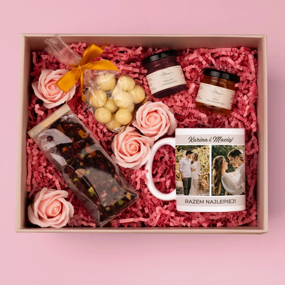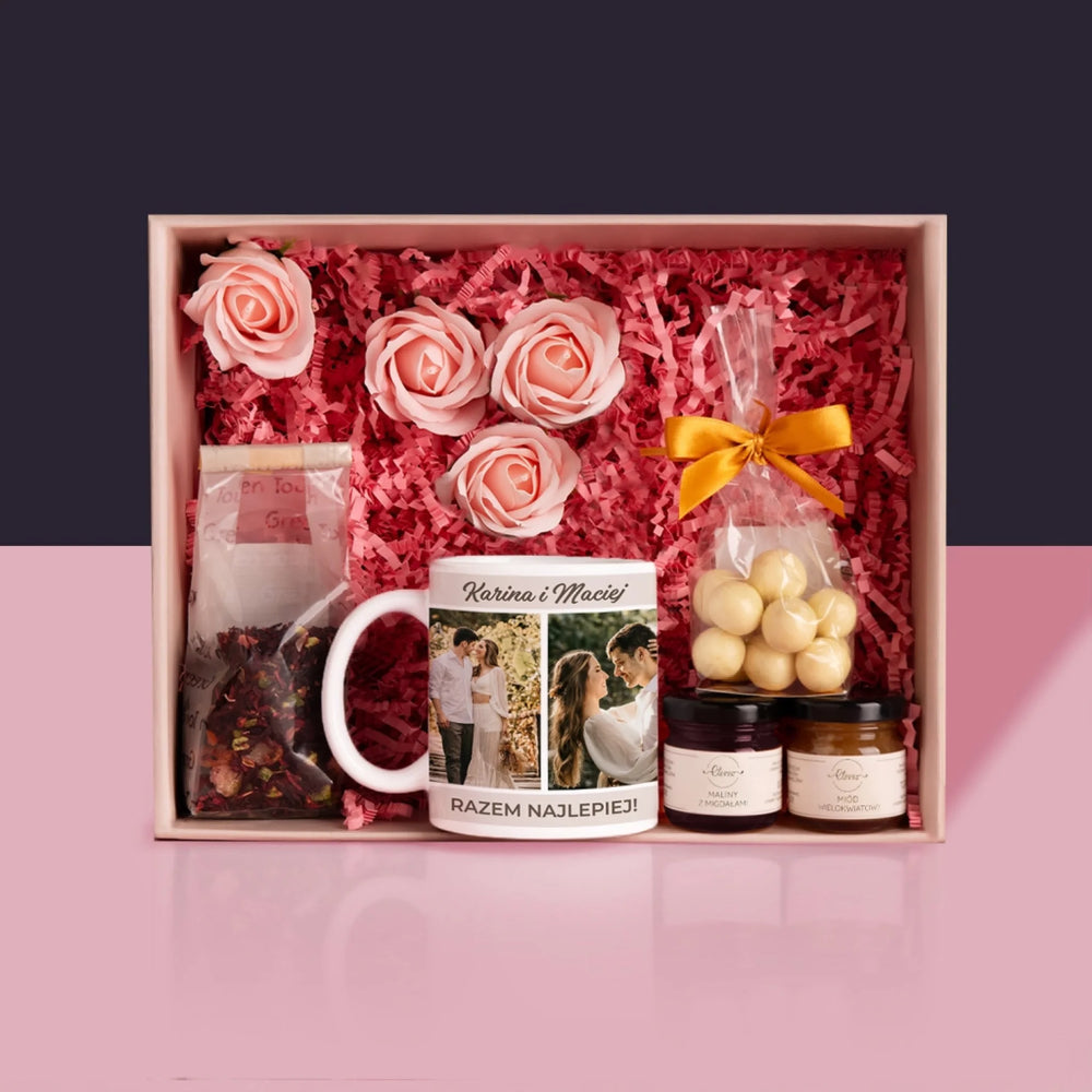 Fotokolaż: Razem Najlepiej - Zestaw prezentowy z kubkiem, herbatą i słodkościami