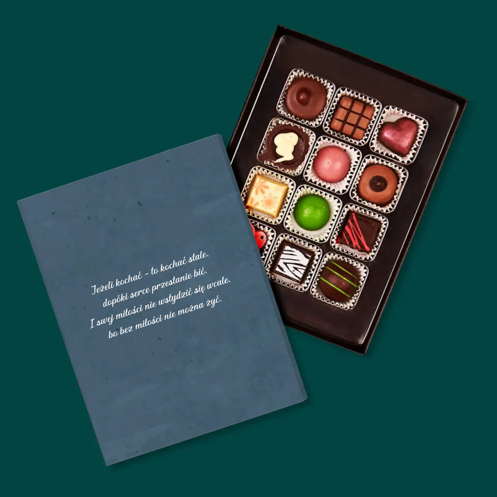 Pyszne praliny z belgijskiej czekolady w eleganckim pudełku z wybraną przez Ciebie personalizacją.