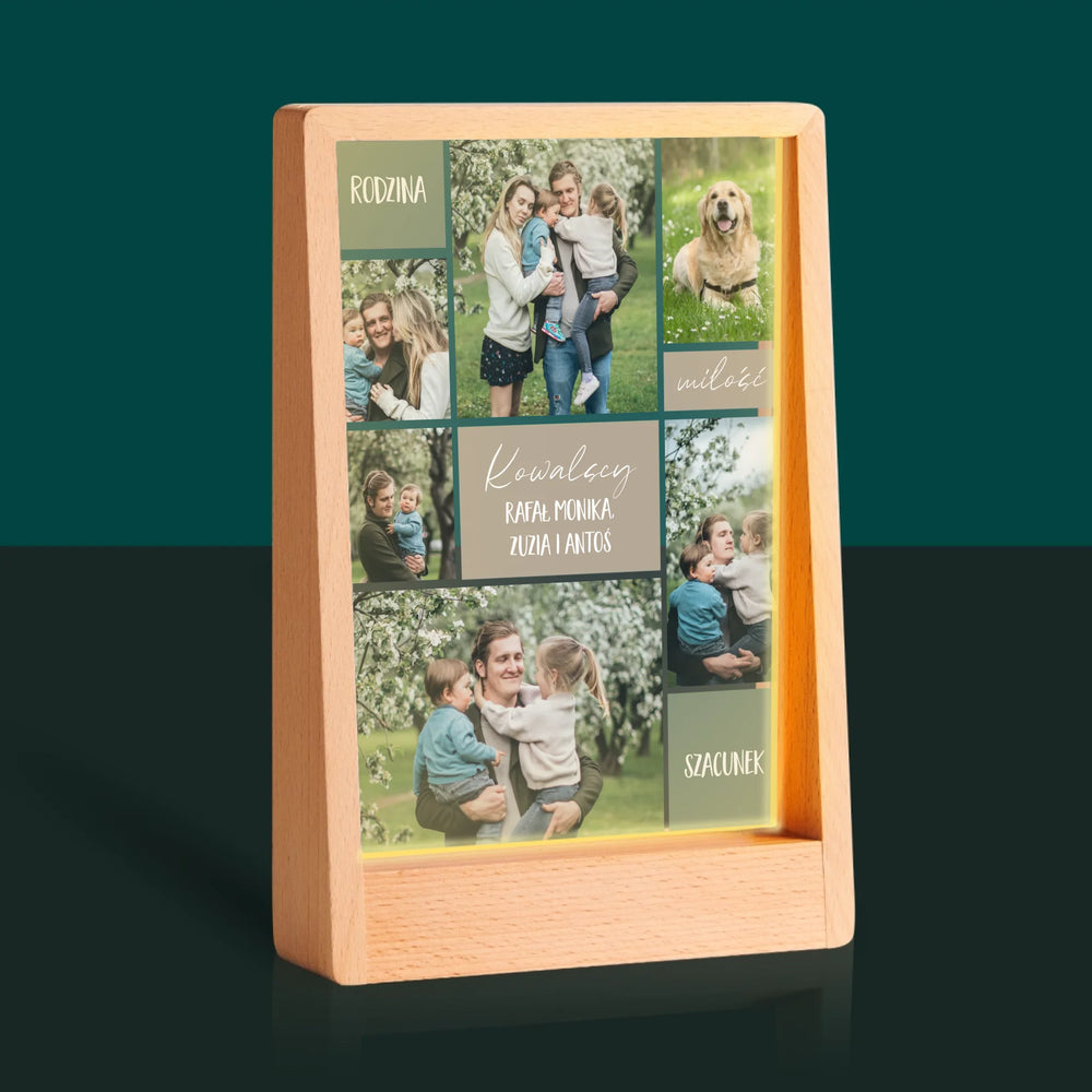 Fotokolaż: Rodzina - Wydruk na szkle akrylowym w ramce LED