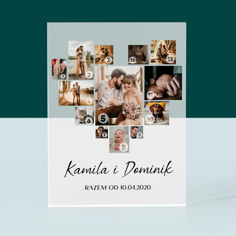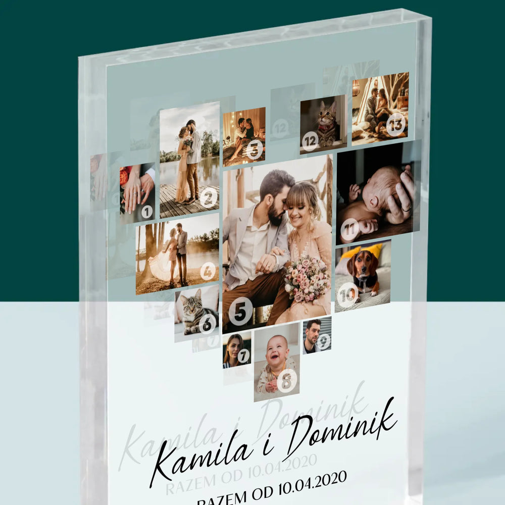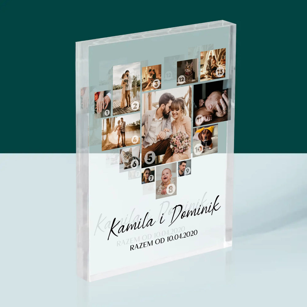 Fotokolaż: Serce - Blok Akrylowy z Nadrukiem