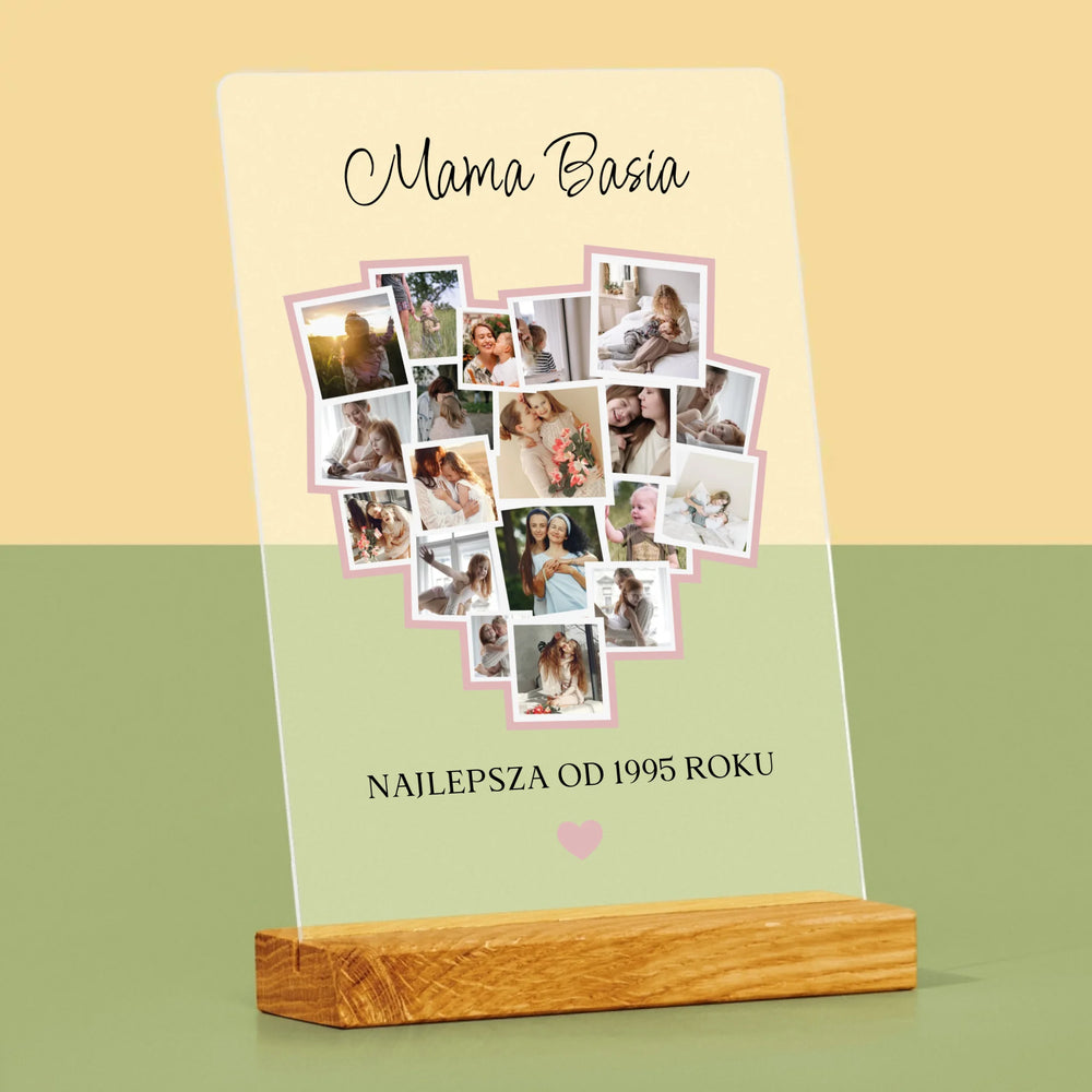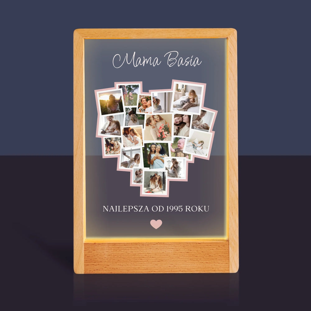 Fotokolaż: Serce Dla Mamy - Wydruk na szkle akrylowym w ramce LED