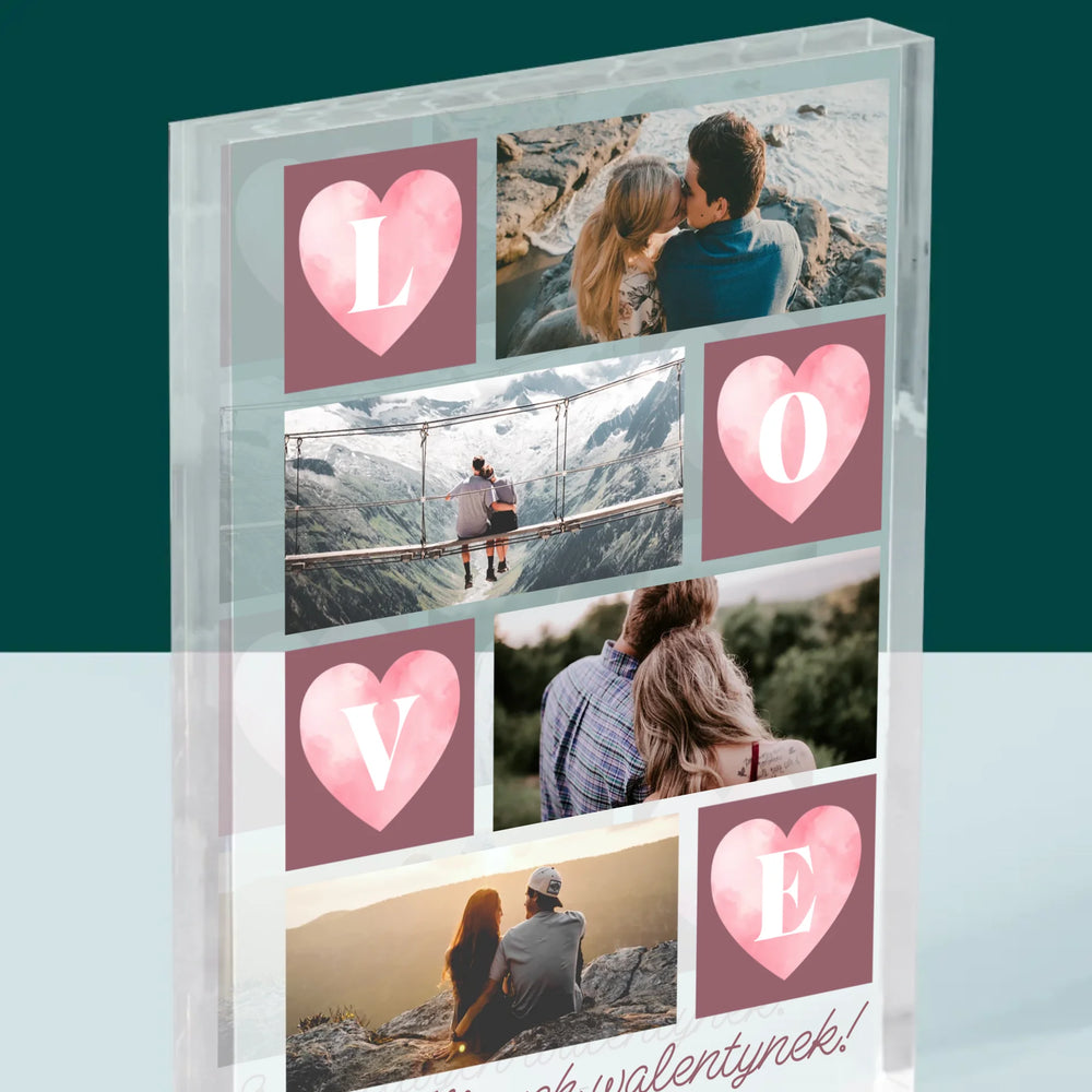 Fotokolaż: Serduszka Love - Blok Akrylowy z Nadrukiem