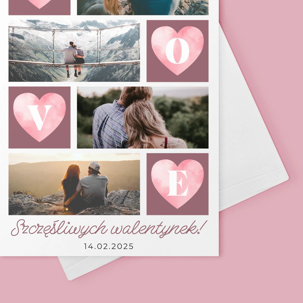 Fotokolaż: Serduszka Love - Kartka z życzeniami