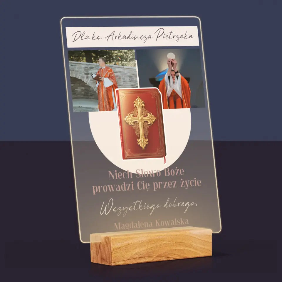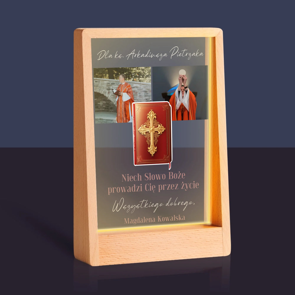Fotokolaż: Słowo Boże - Wydruk na szkle akrylowym w ramce LED