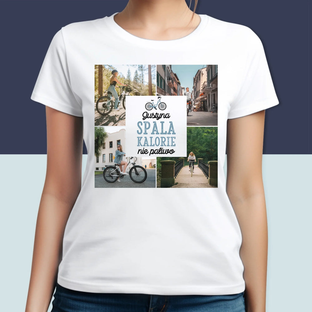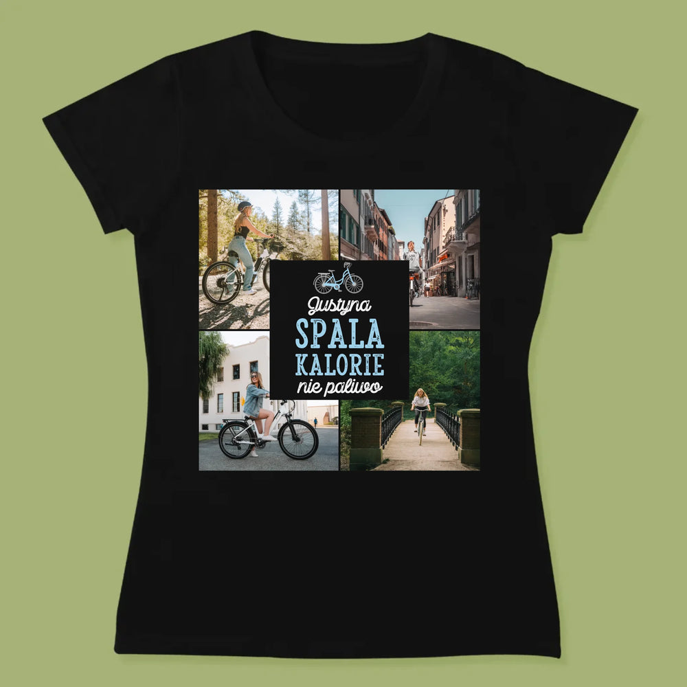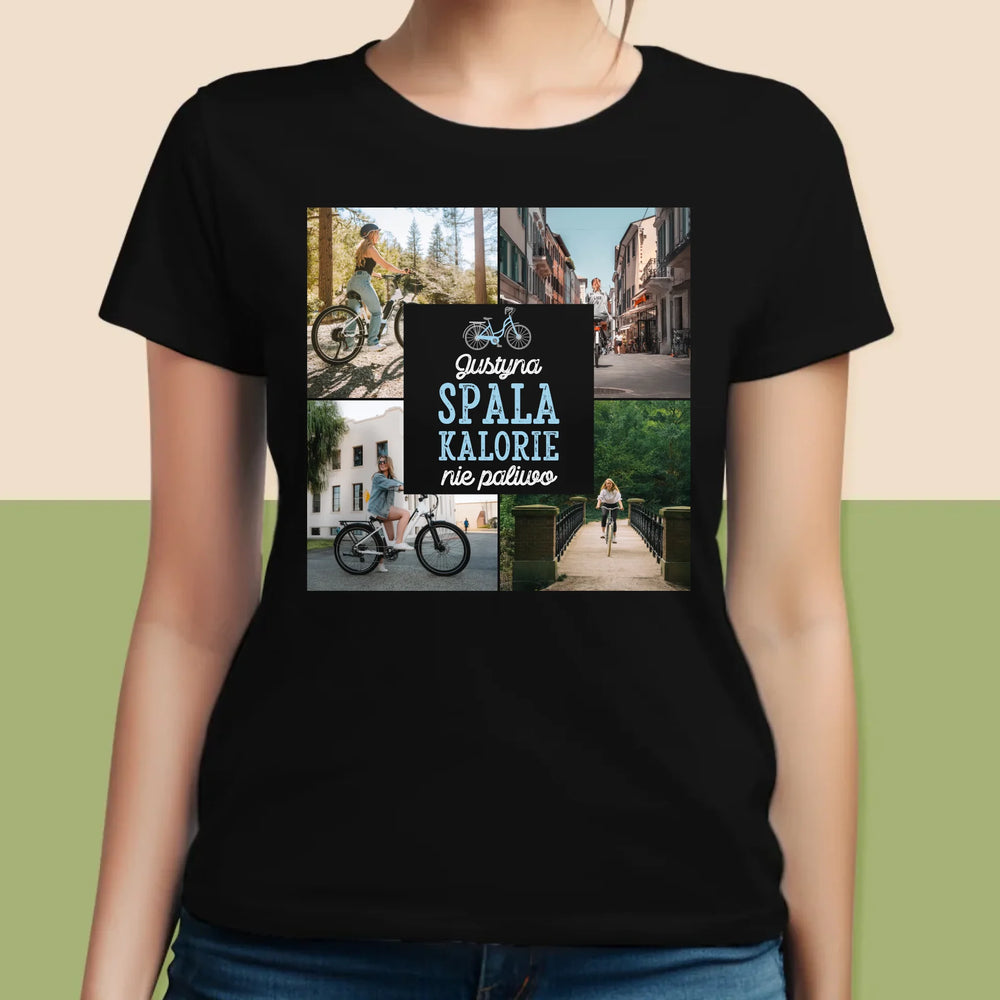 Fotokolaż: Spala Kalorie, Nie Paliwo - Personalizowana Koszulka Damska