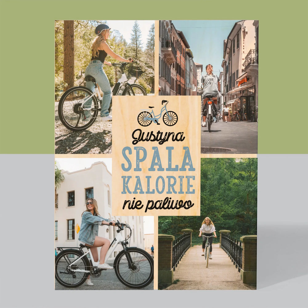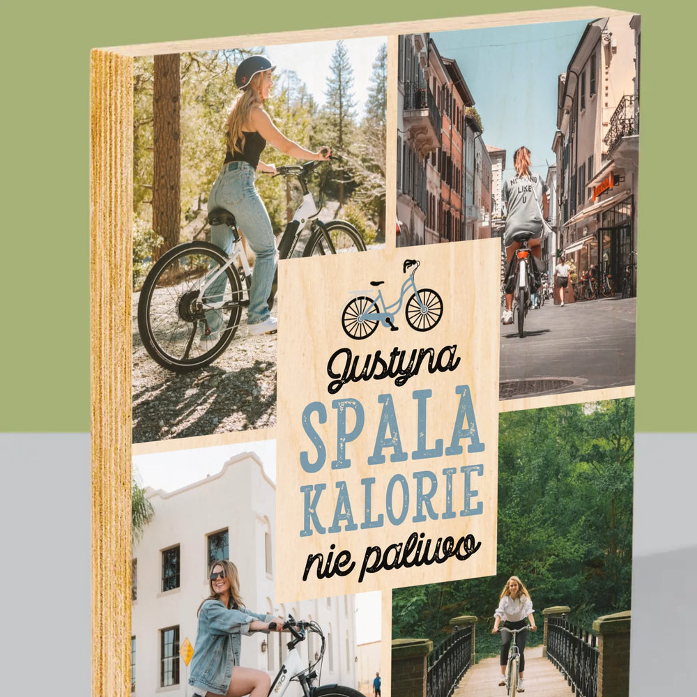 Fotokolaż: Spala Kalorie, Nie Paliwo - Wydruk na drewnie - Pion