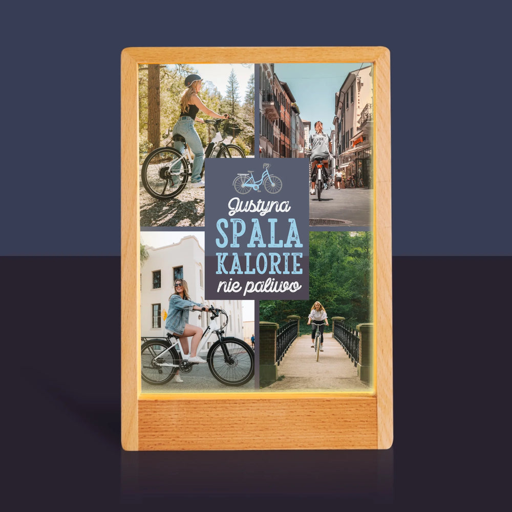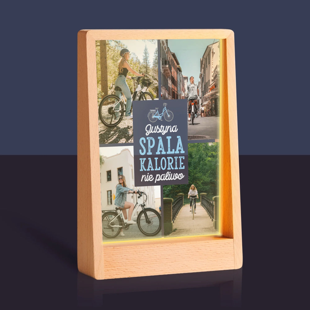 Fotokolaż: Spala Kalorie, Nie Paliwo - Wydruk na szkle akrylowym w ramce LED