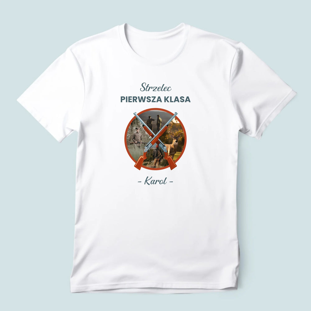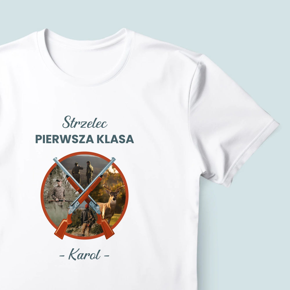 Fotokolaż: Strzelec Pierwsza Klasa - Personalizowana Koszulka Męska