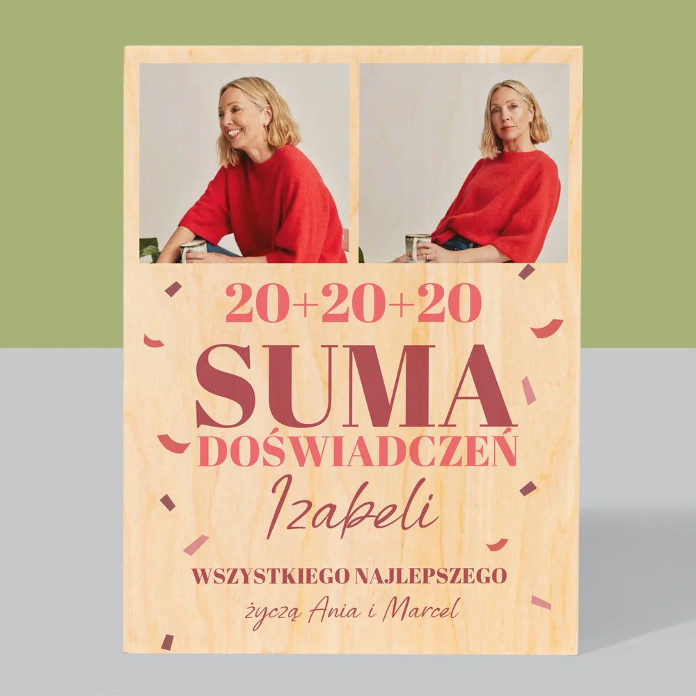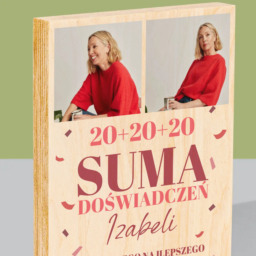 Fotokolaż: Suma Doświadczeń - Wydruk na drewnie - Pion