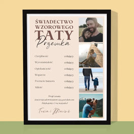 Fotokolaż: Świadectwo Wzorowego Taty - Ramka na Zdjęcia z Nadrukiem