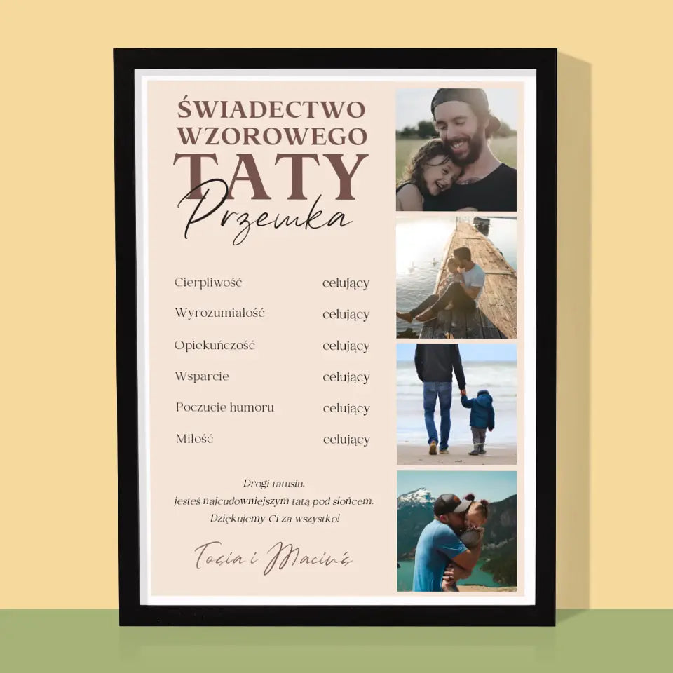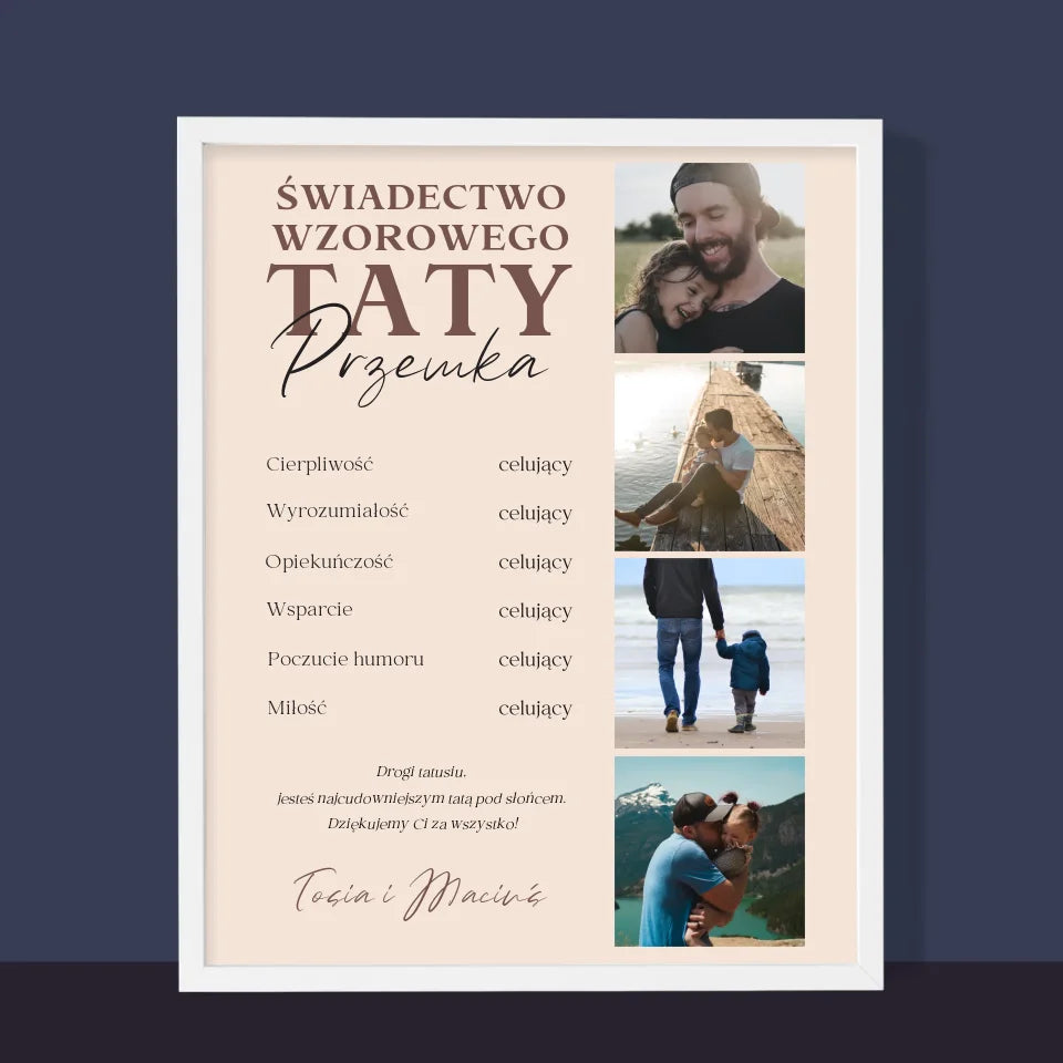 Fotokolaż: Świadectwo Wzorowego Taty - Wydruk obramowany - Pion