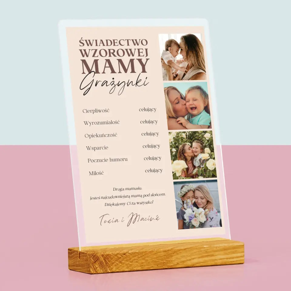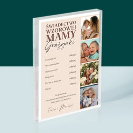 Fotokolaż: Świadectwo Wzorowej Mamy - Wydruk na szkle akrylowym