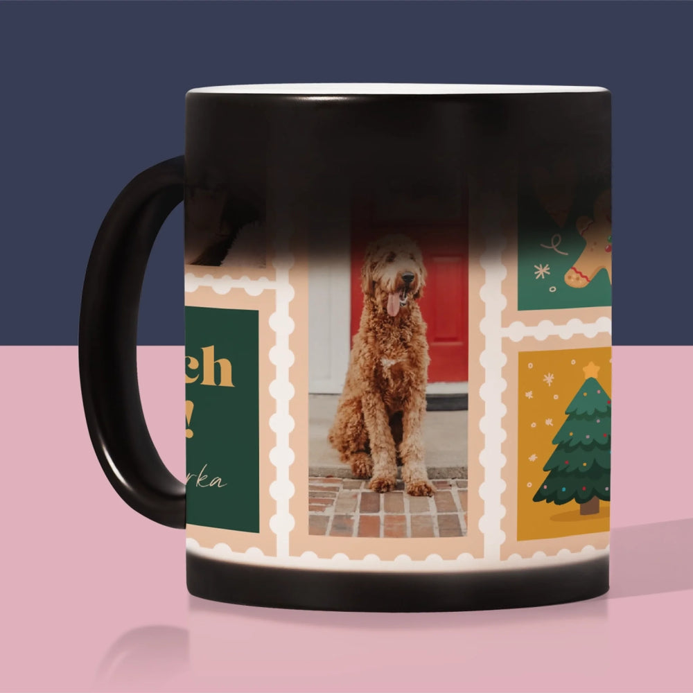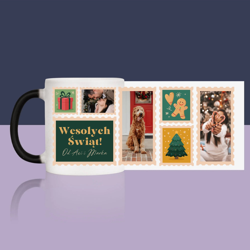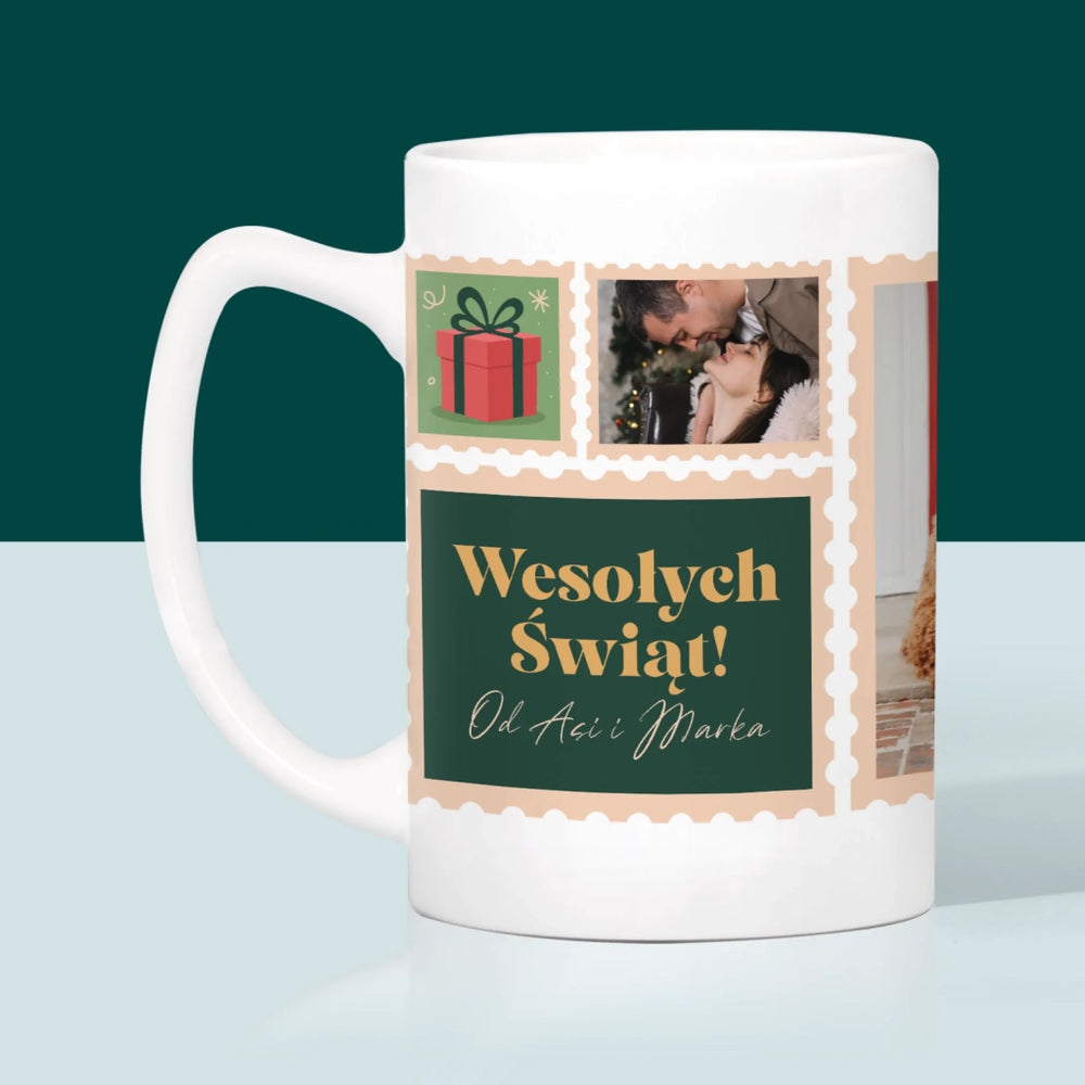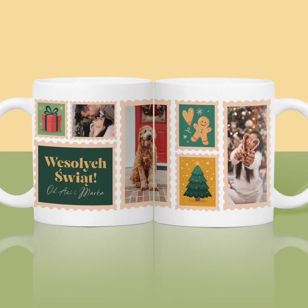 Fotokolaż: Świąteczne Znaczki Pocztowe - Kubek z Nadrukiem