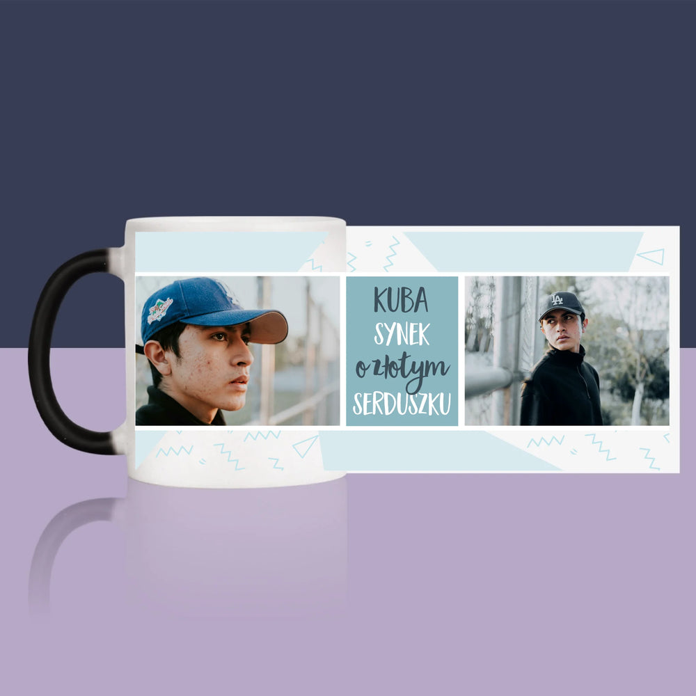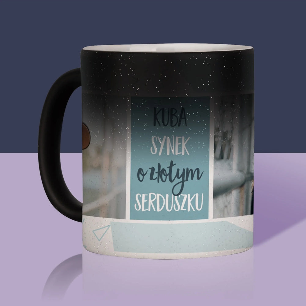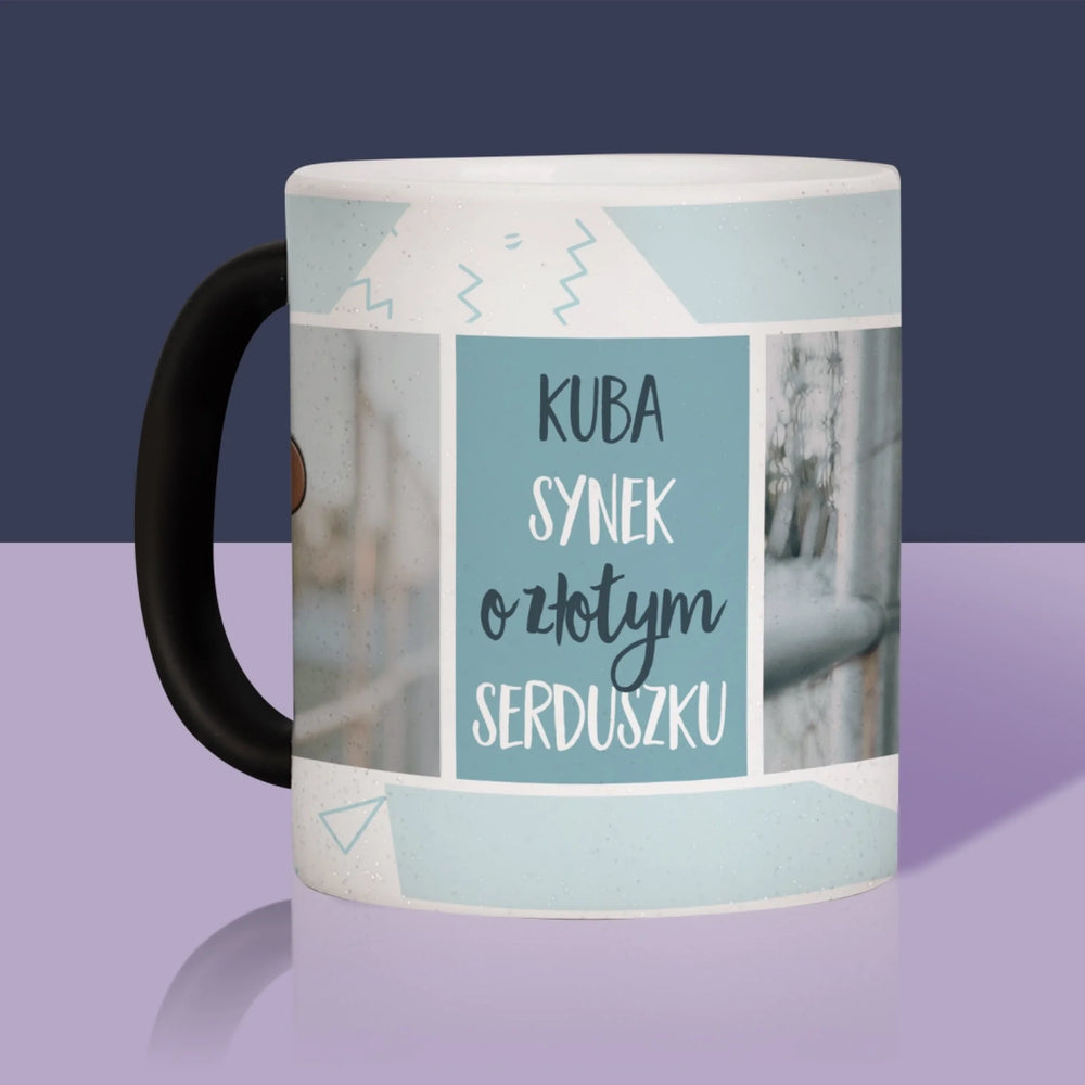 Fotokolaż: Synek o Złotym Serduszku - Magiczny kubek z brokatem