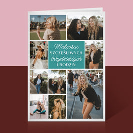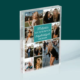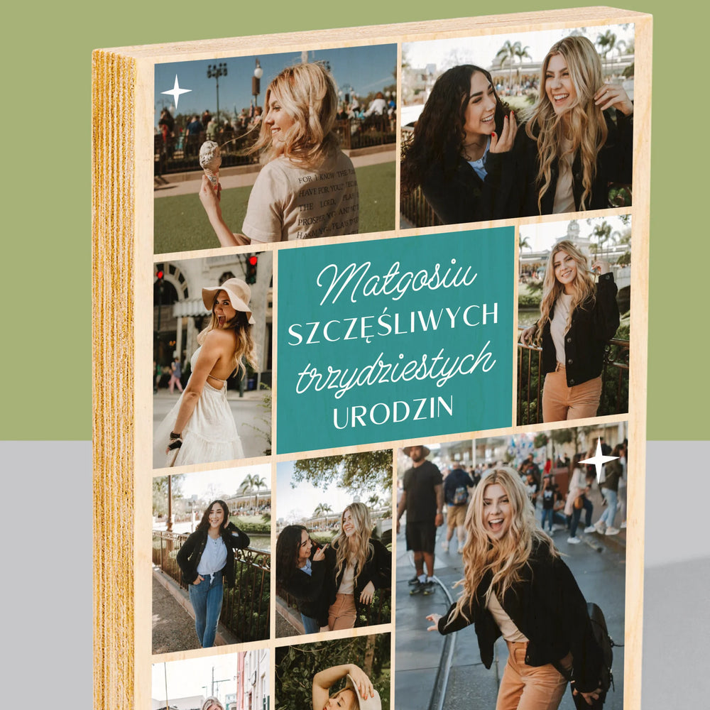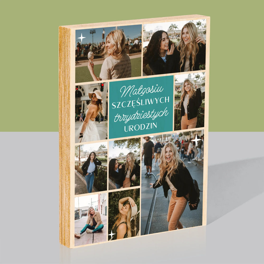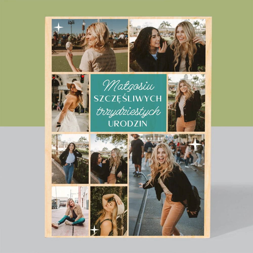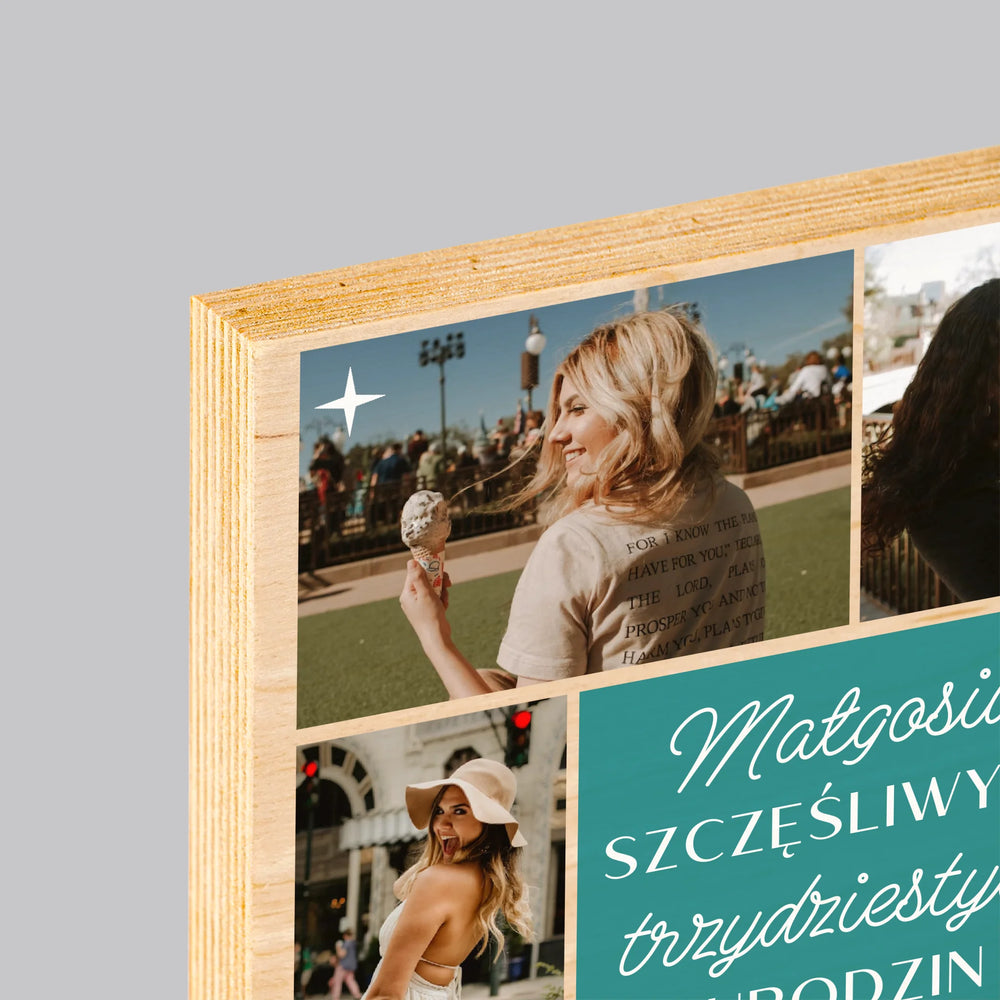 Fotokolaż: Szczęśliwych Urodzin - Wydruk na drewnie - Pion