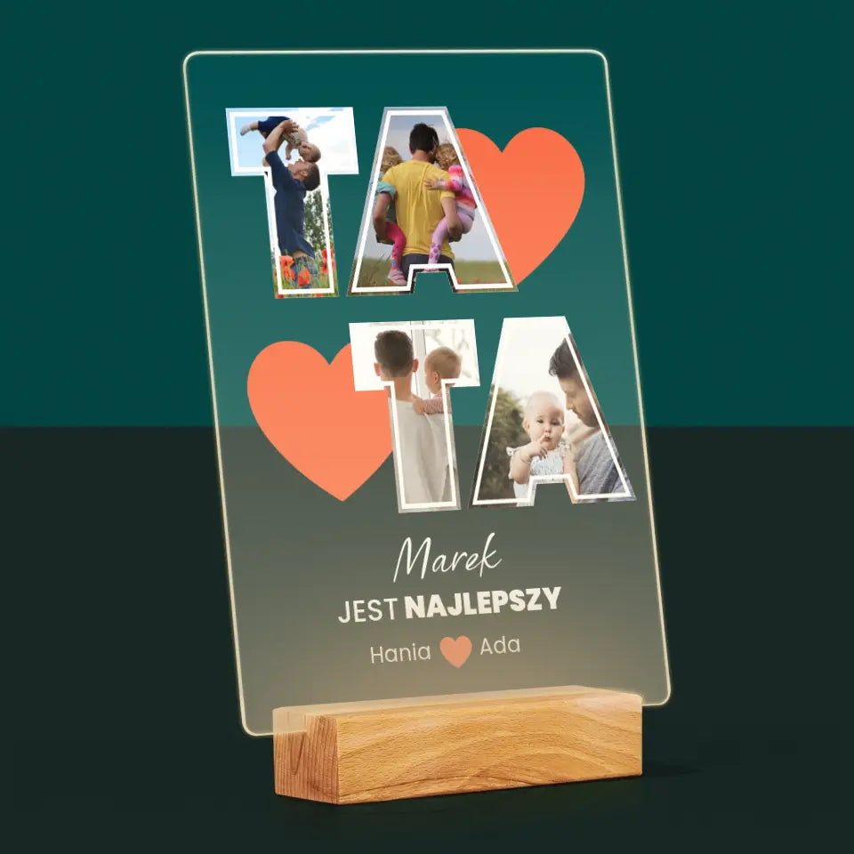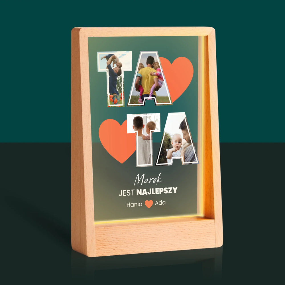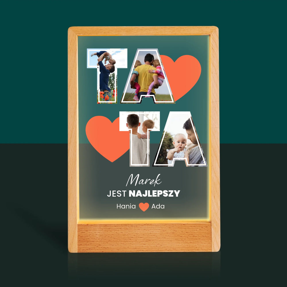 Fotokolaż: Tata Jest Najlepszy - Wydruk na szkle akrylowym w ramce LED