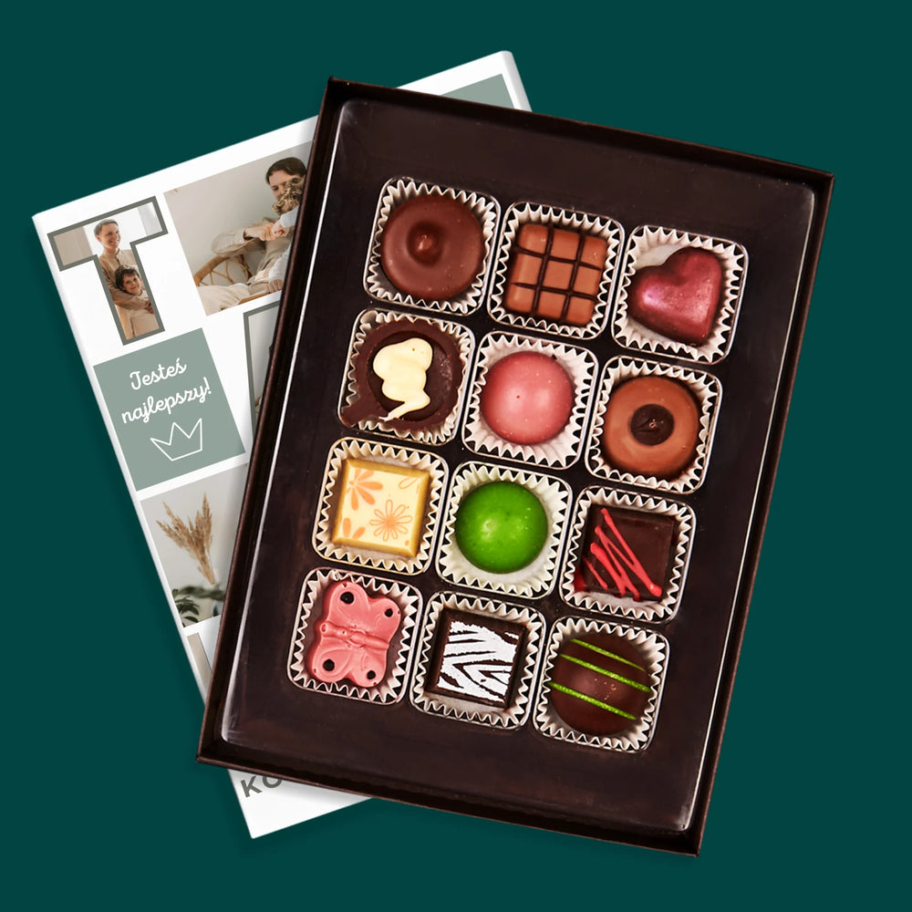 Pyszne praliny z belgijskiej czekolady w eleganckim pudełku z wybraną przez Ciebie personalizacją.