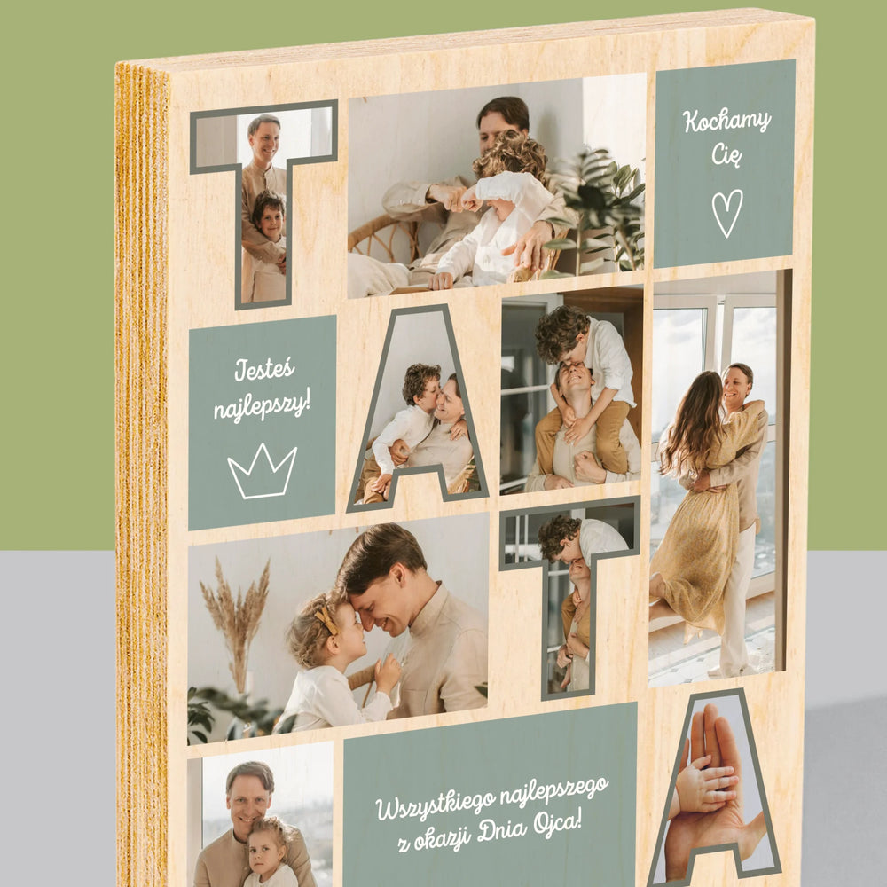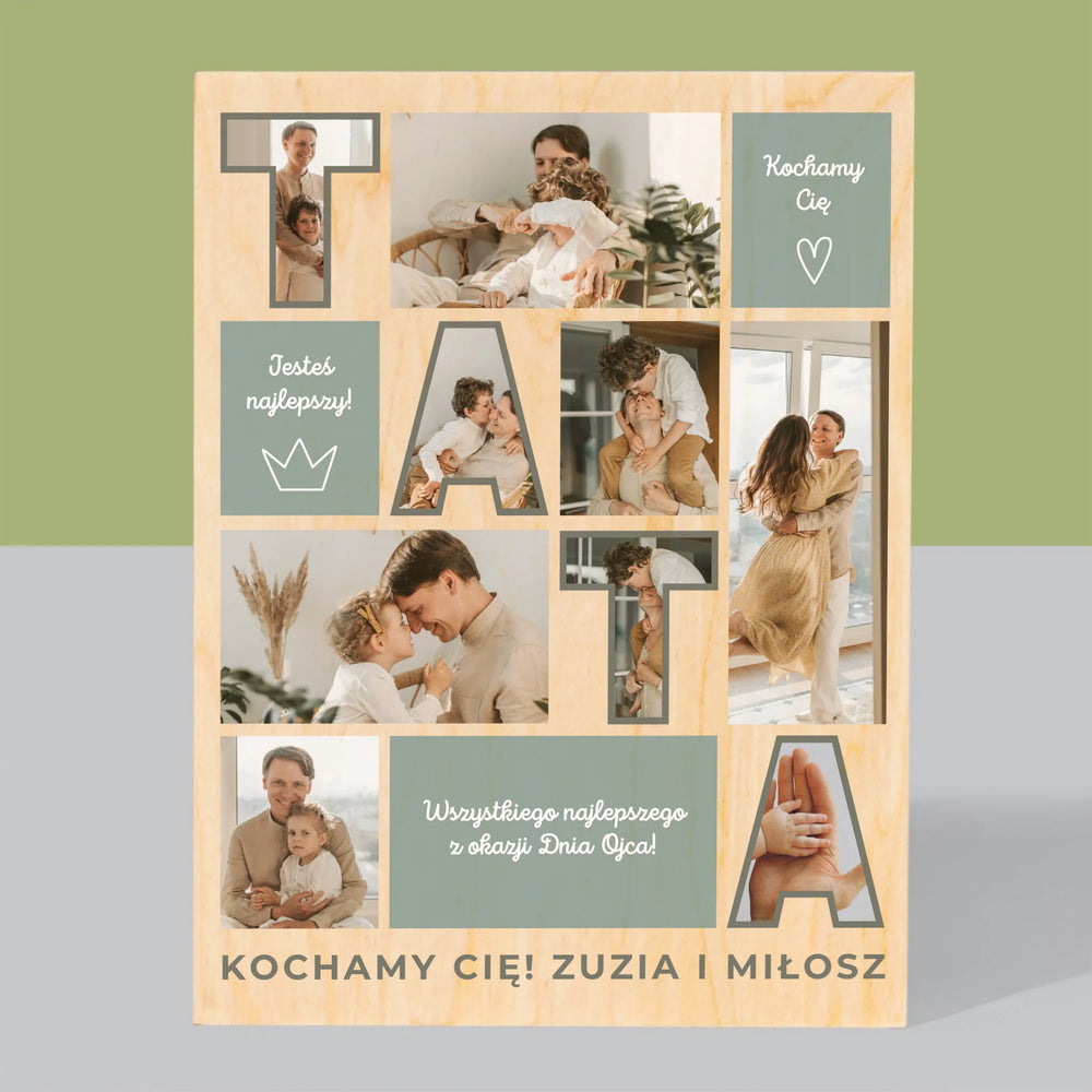 Fotokolaż: Tata Kafelki - Wydruk na drewnie - Pion