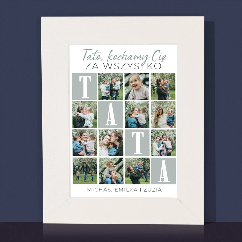 Fotokolaż: Tato Kochamy Cię Za Wszystko - Ramka na Zdjęcia z Nadrukiem
