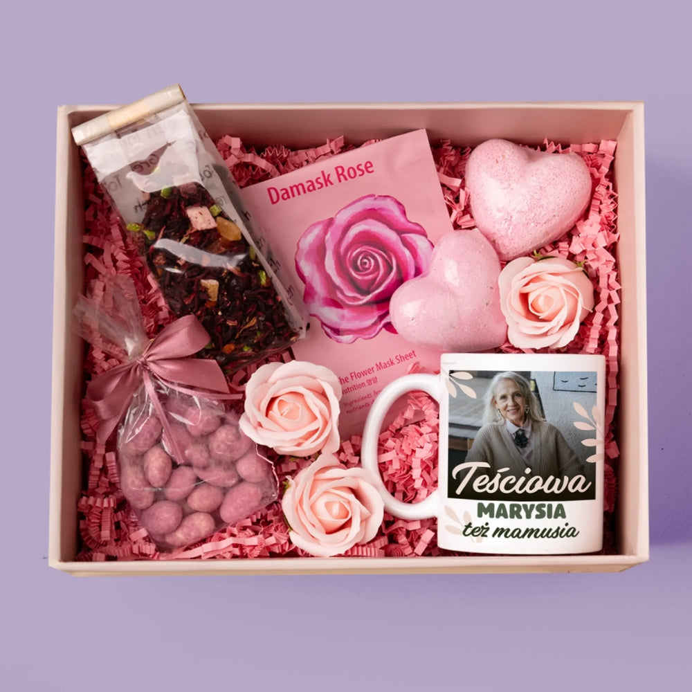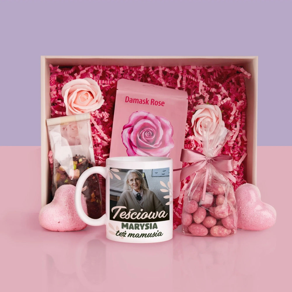 Fotokolaż: Teściowa Też Mamusia - Zestaw prezentowy z kubkiem i różanym spa