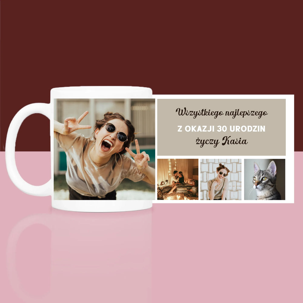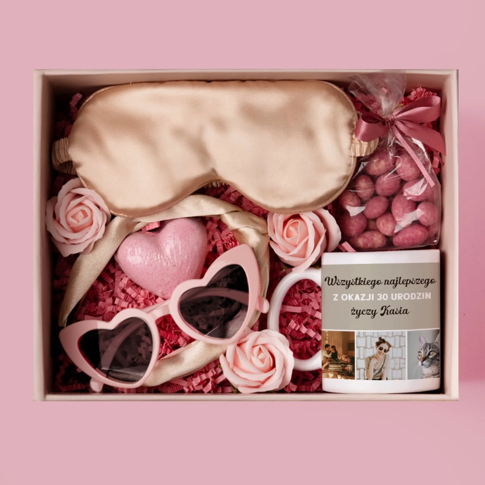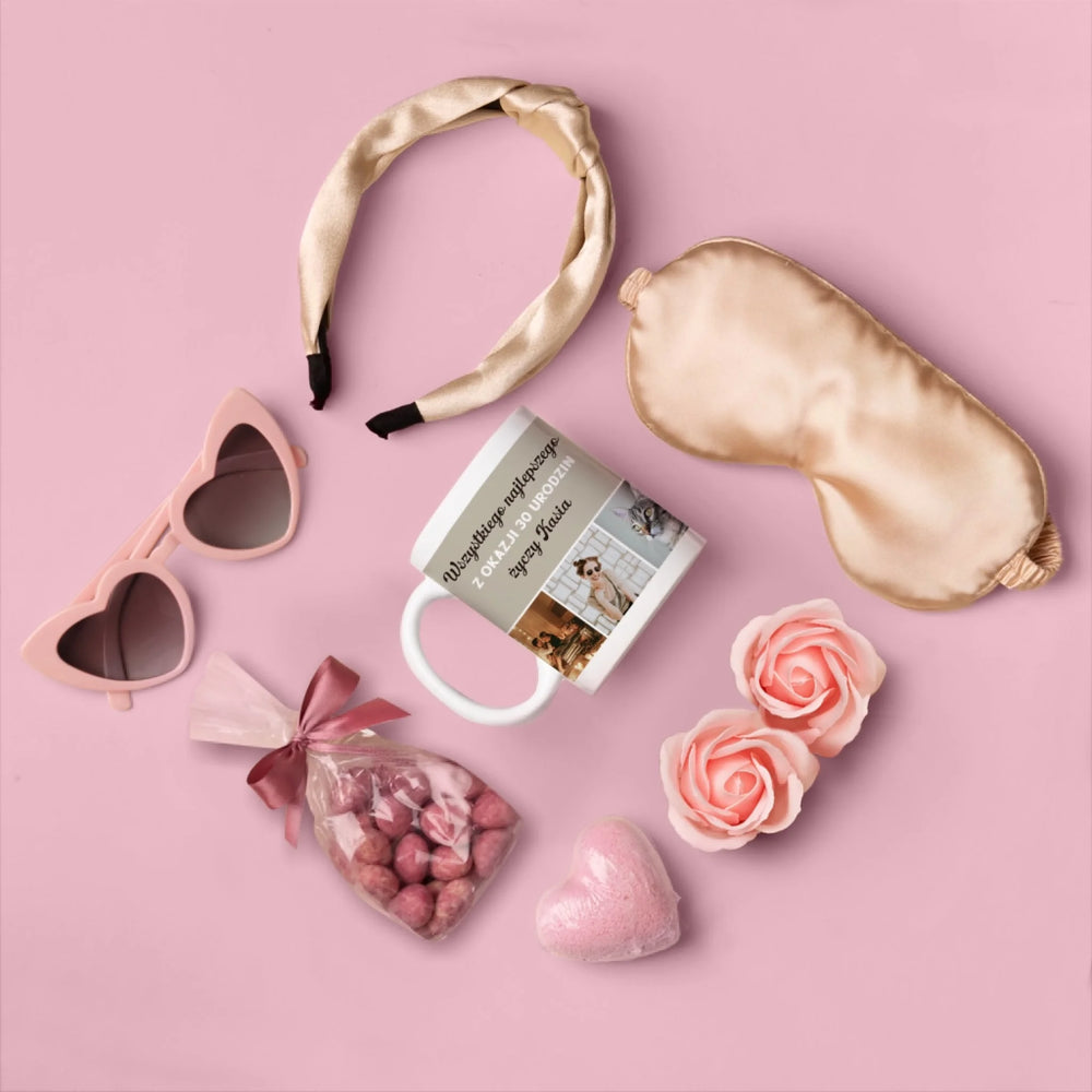 Fotokolaż: Urodzinowy - Zestaw prezentowy z kubkiem i satynową opaską