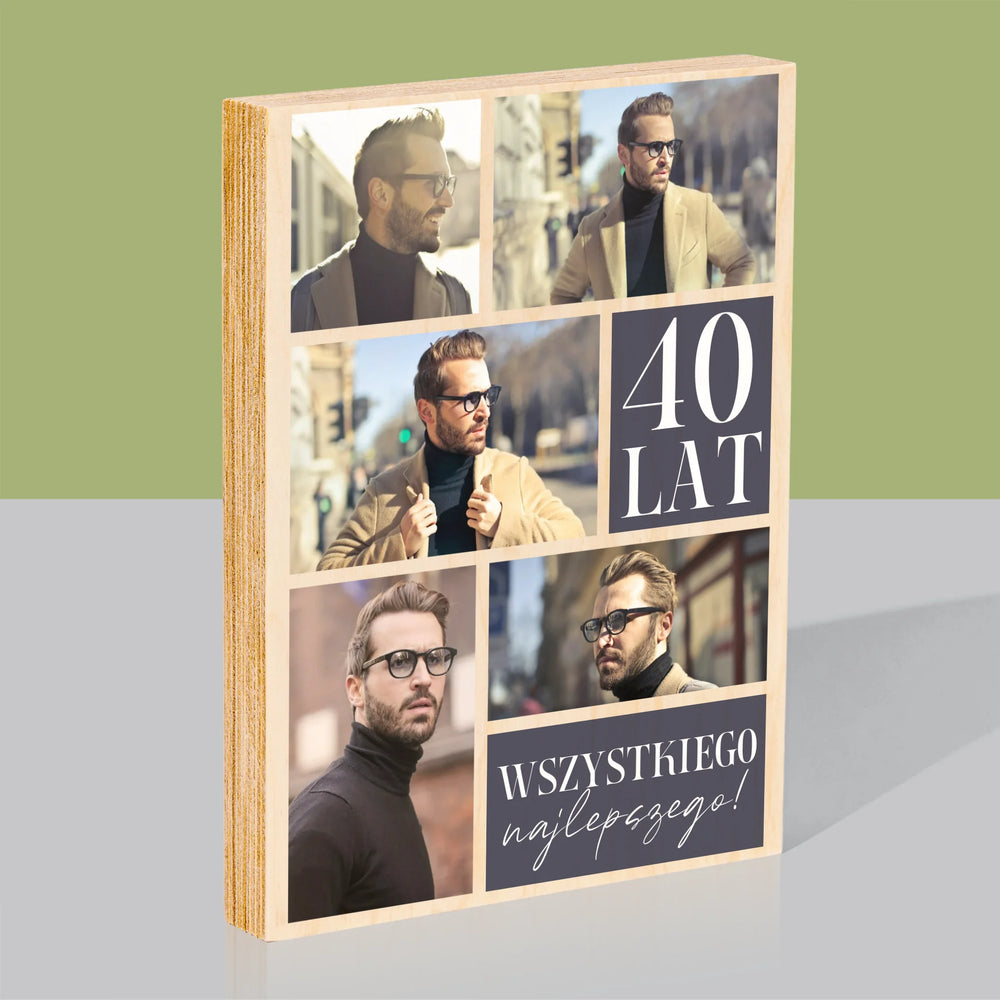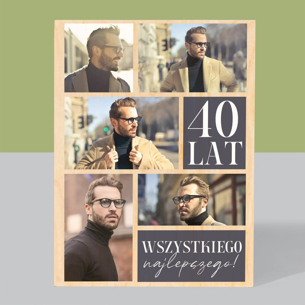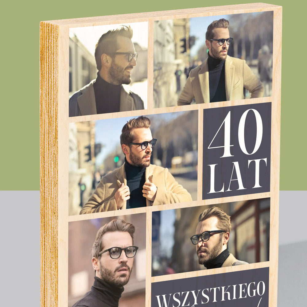 Fotokolaż: Urodziny Najlepszego - Wydruk na drewnie - Pion