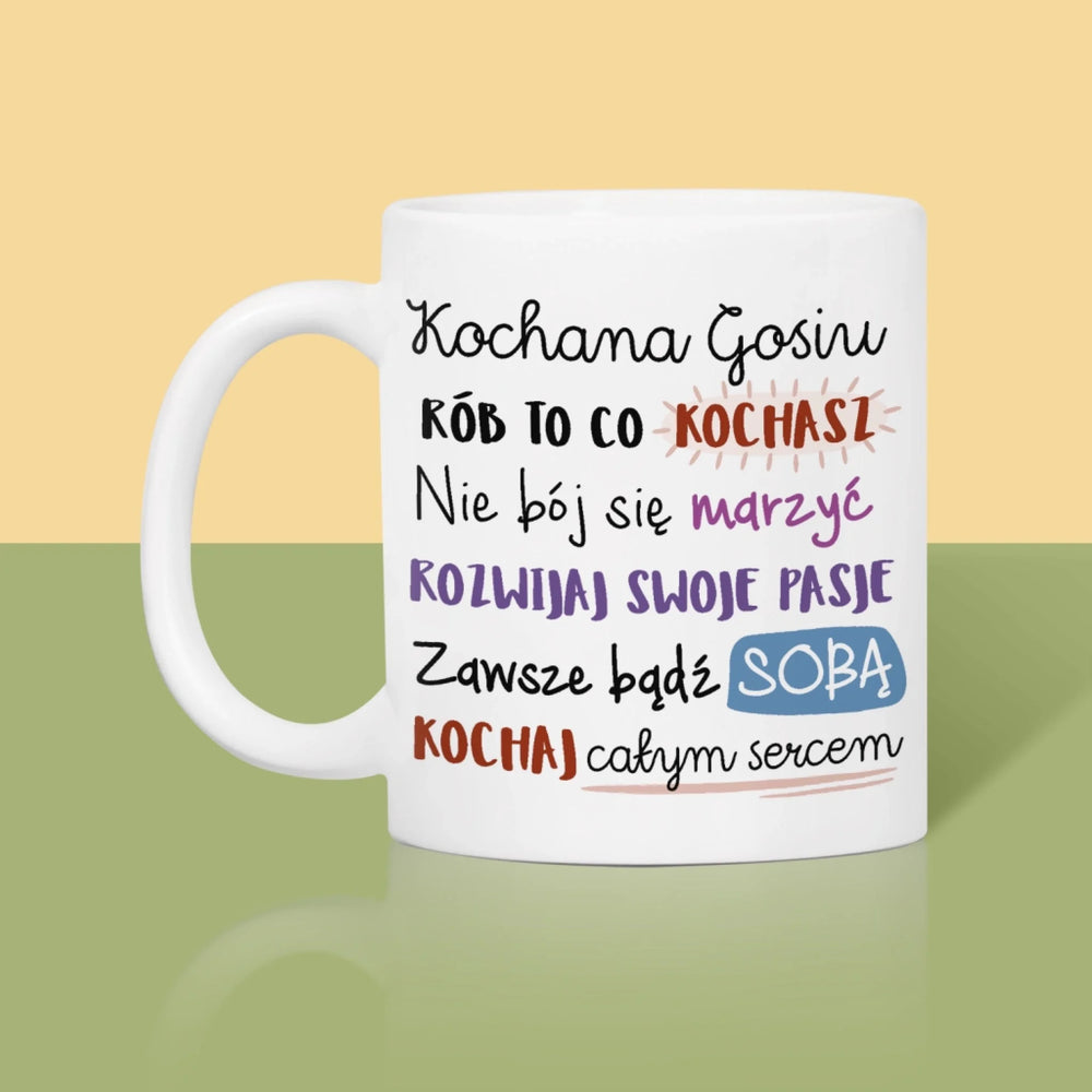 Wysokiej jakości kubek ceramiczny z wybraną przez Ciebie personalizacją.