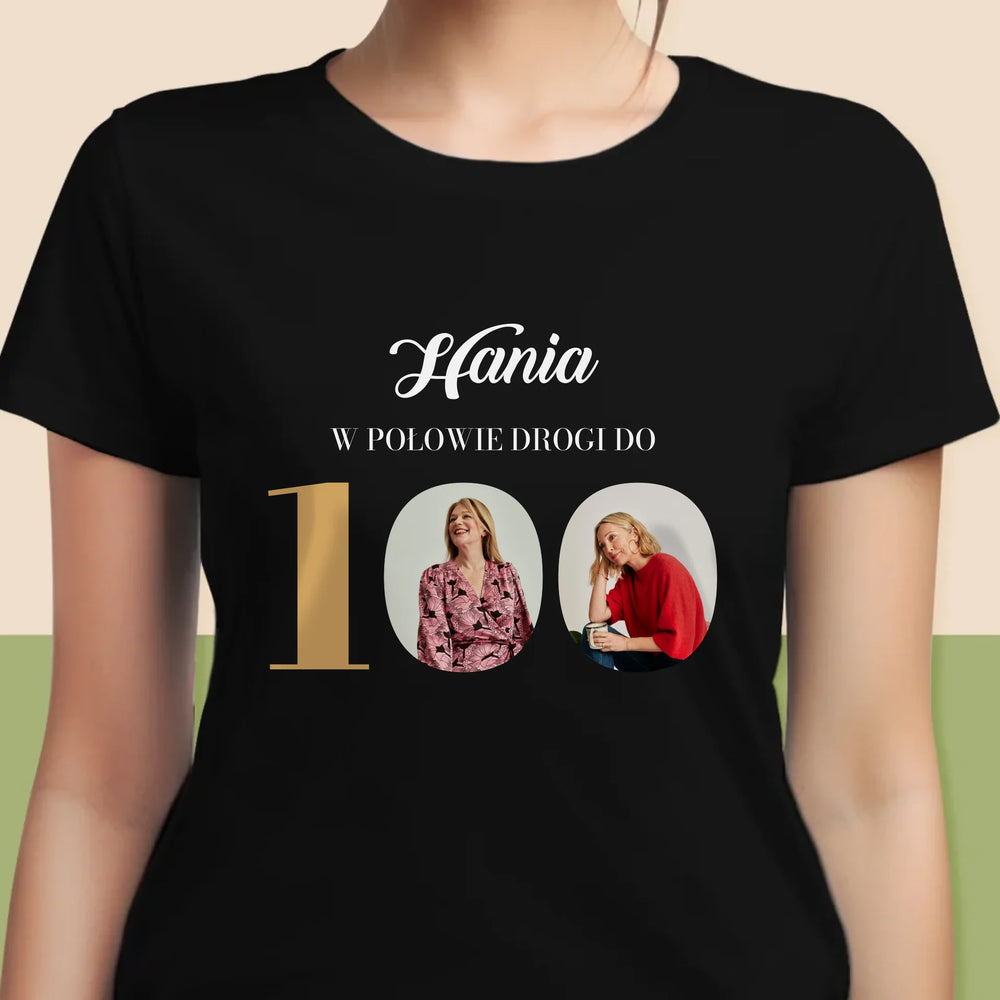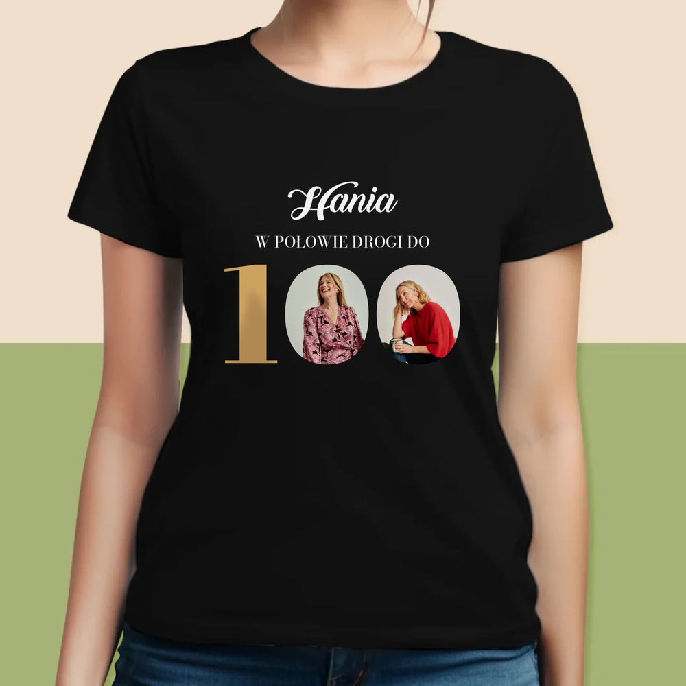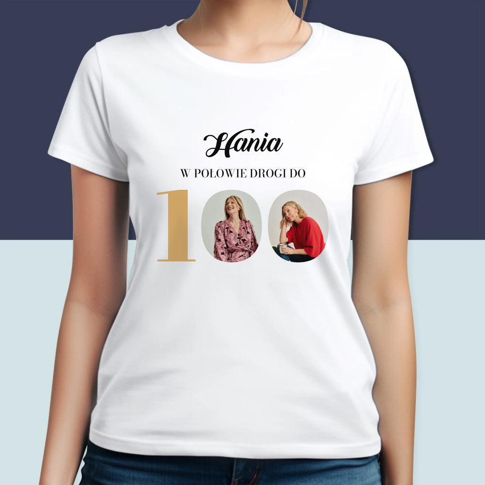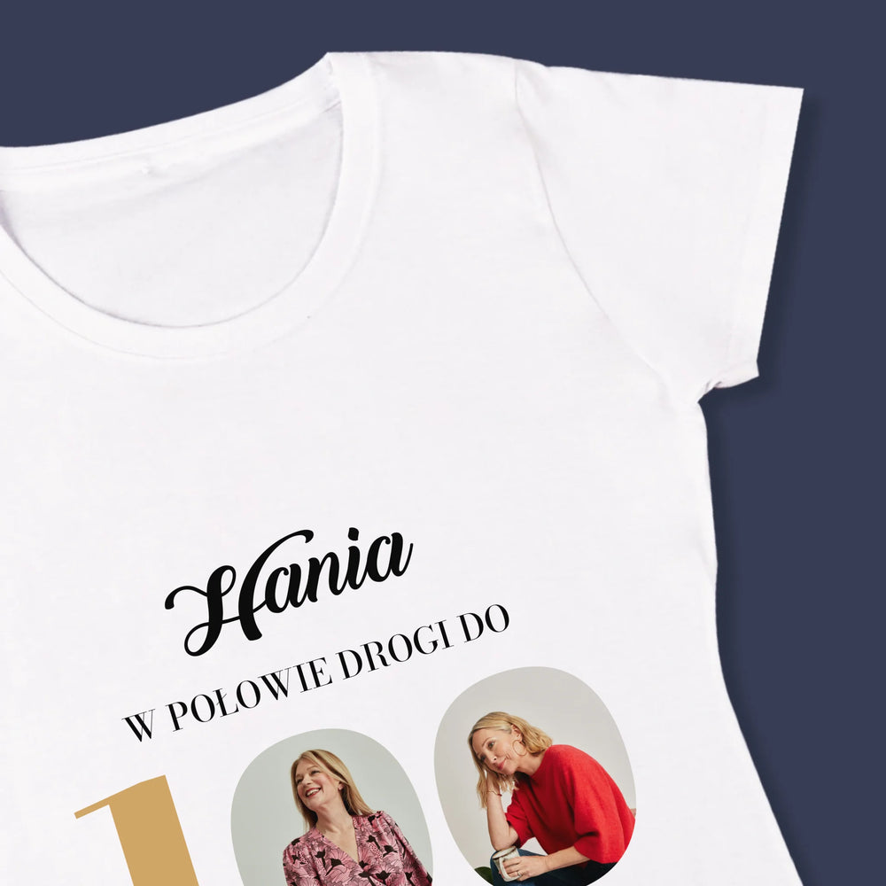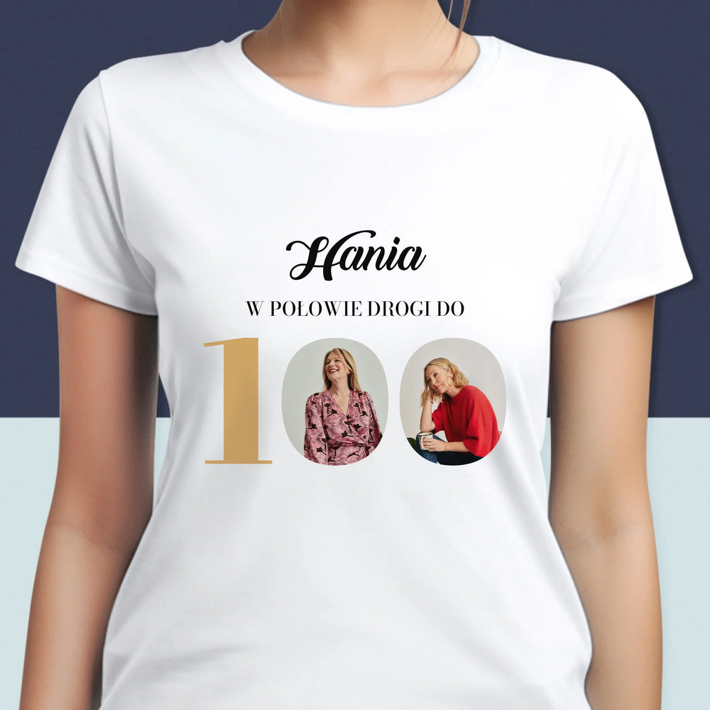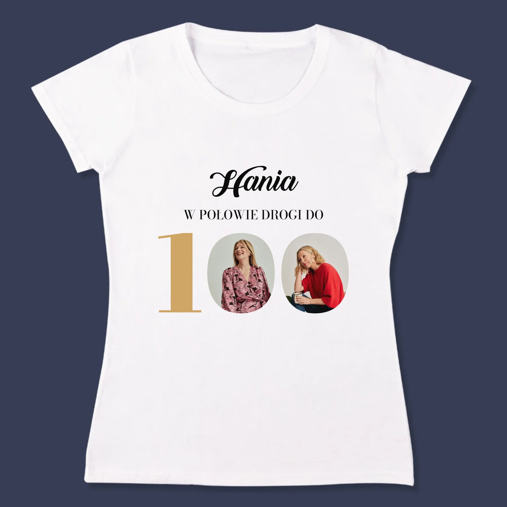 Fotokolaż: W Połowie Drogi Do 100 - Personalizowana Koszulka Damska