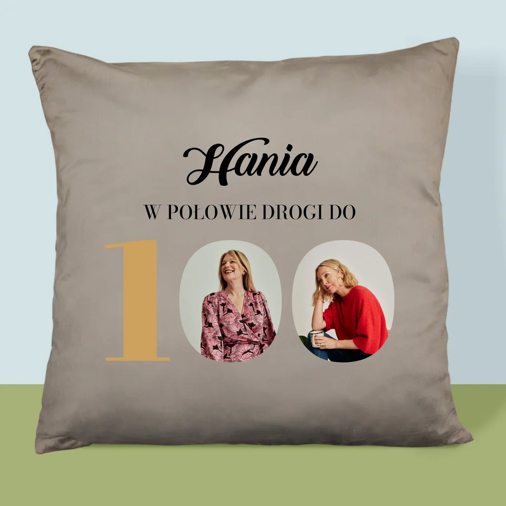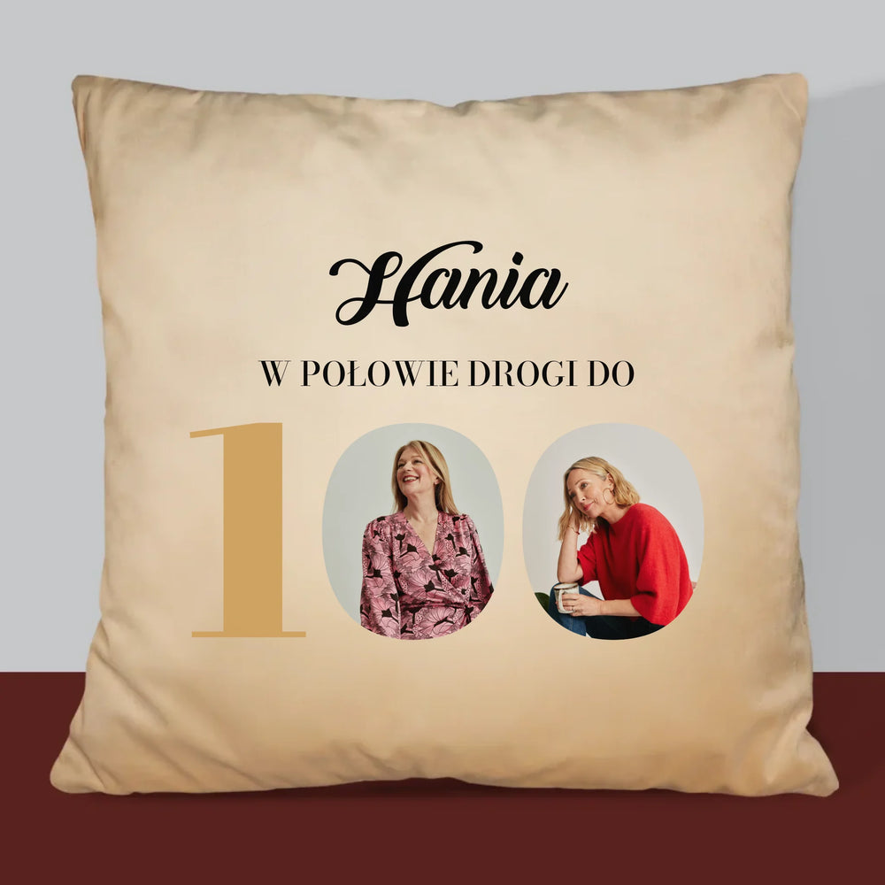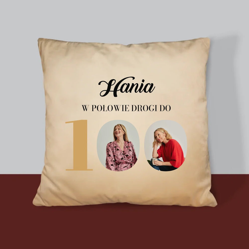Fotokolaż: W Połowie Drogi Do 100 - Poduszka z Nadrukiem