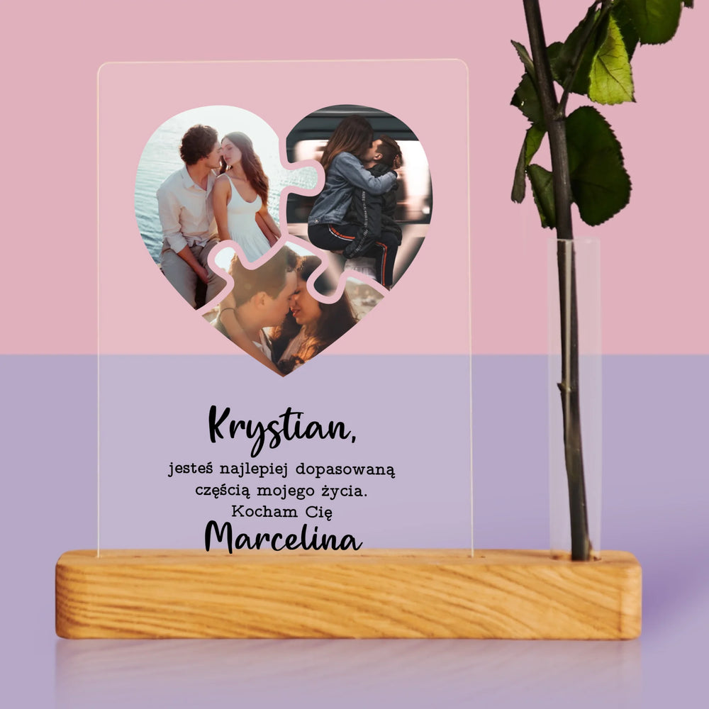 Fotokolaż: Walentynkowe Puzzle - Wydruk Na Szkle Akrylowym z Różą