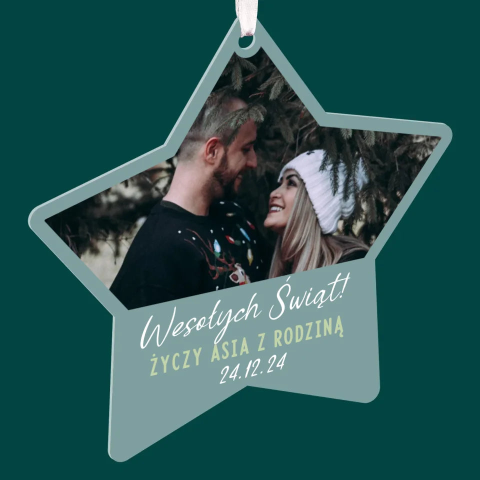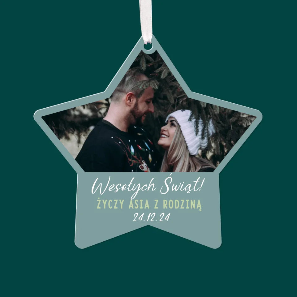 Fotokolaż: Wesołych Świąt - Bombka akrylowa gwiazdka