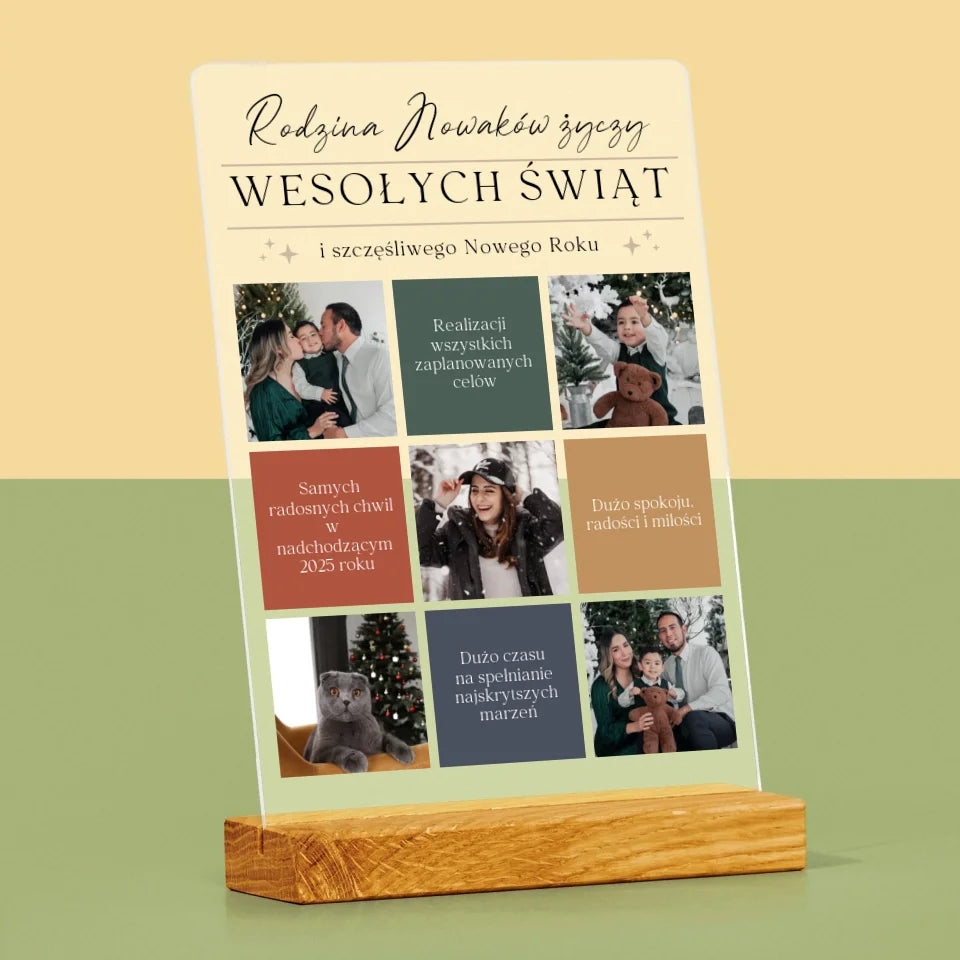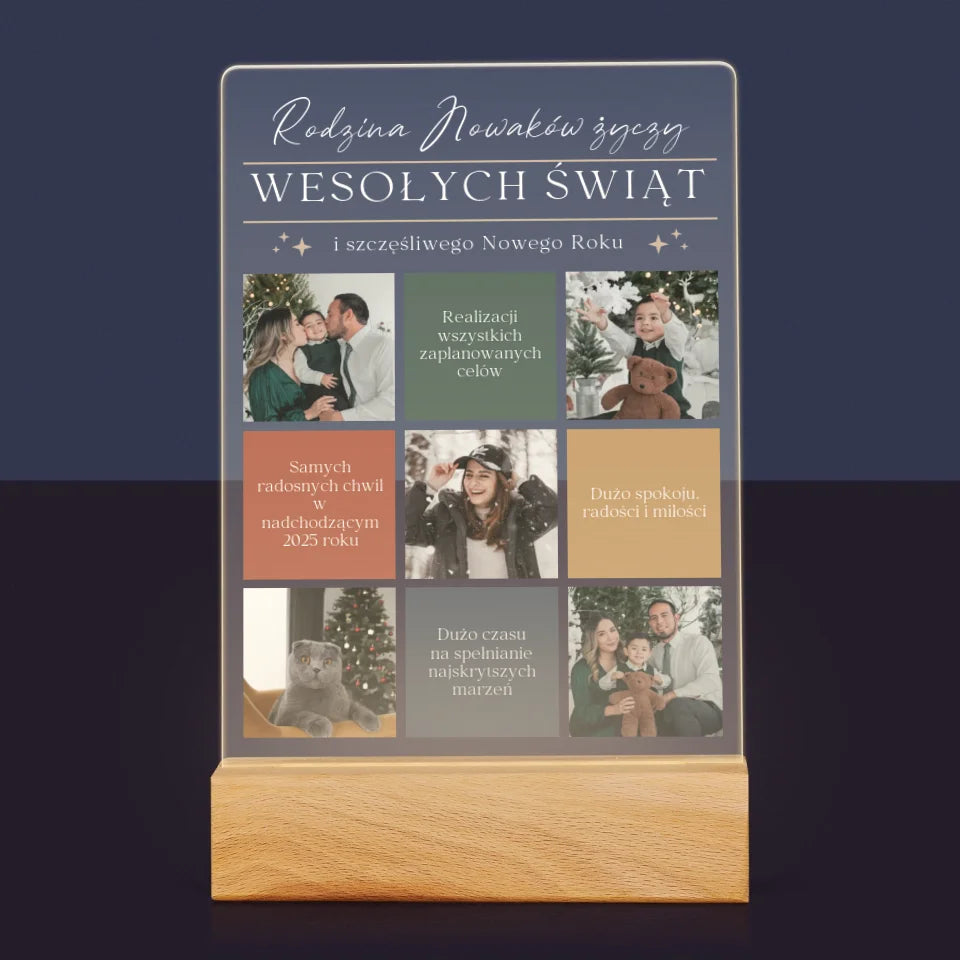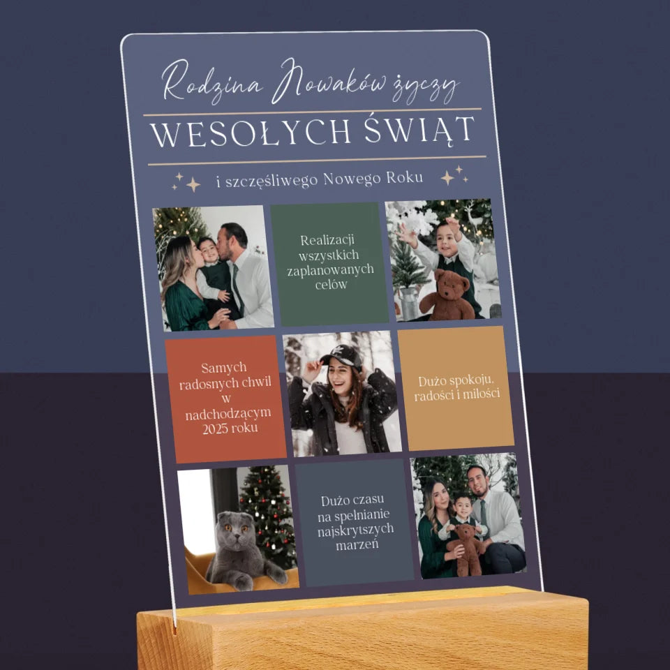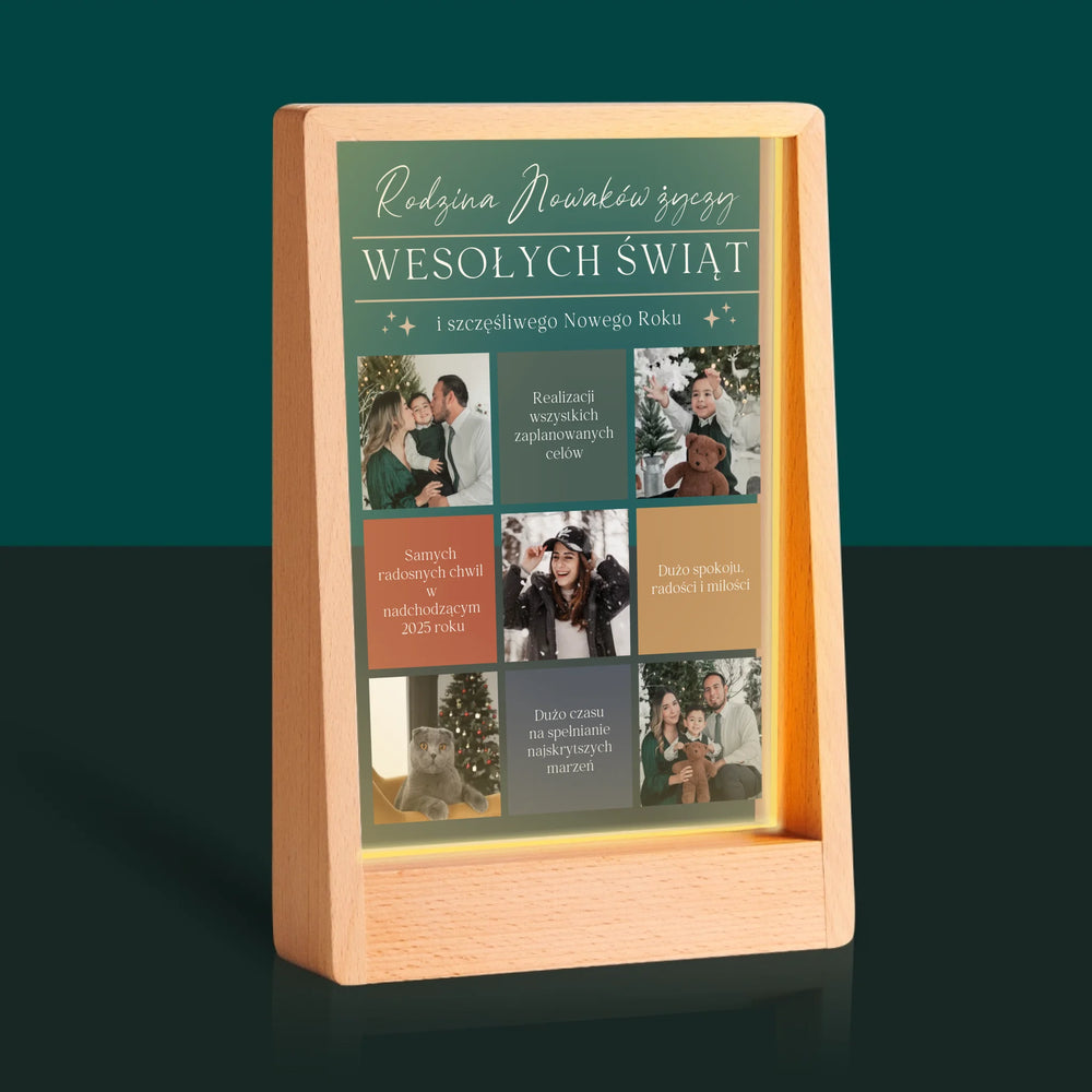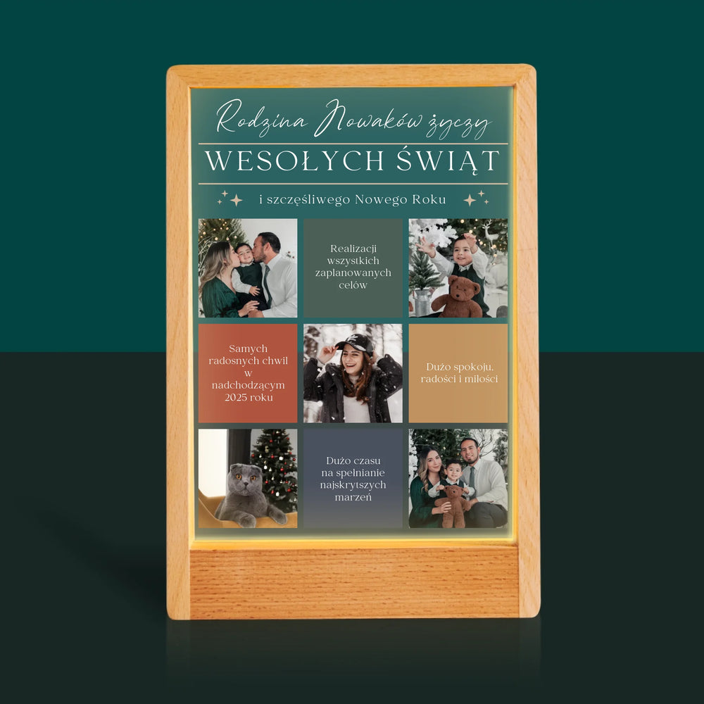 Fotokolaż: Wesołych Świąt Życzenia - Wydruk na szkle akrylowym w ramce LED
