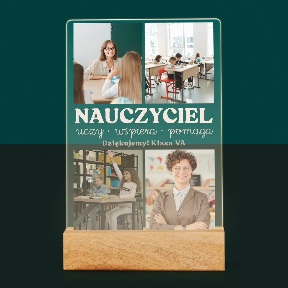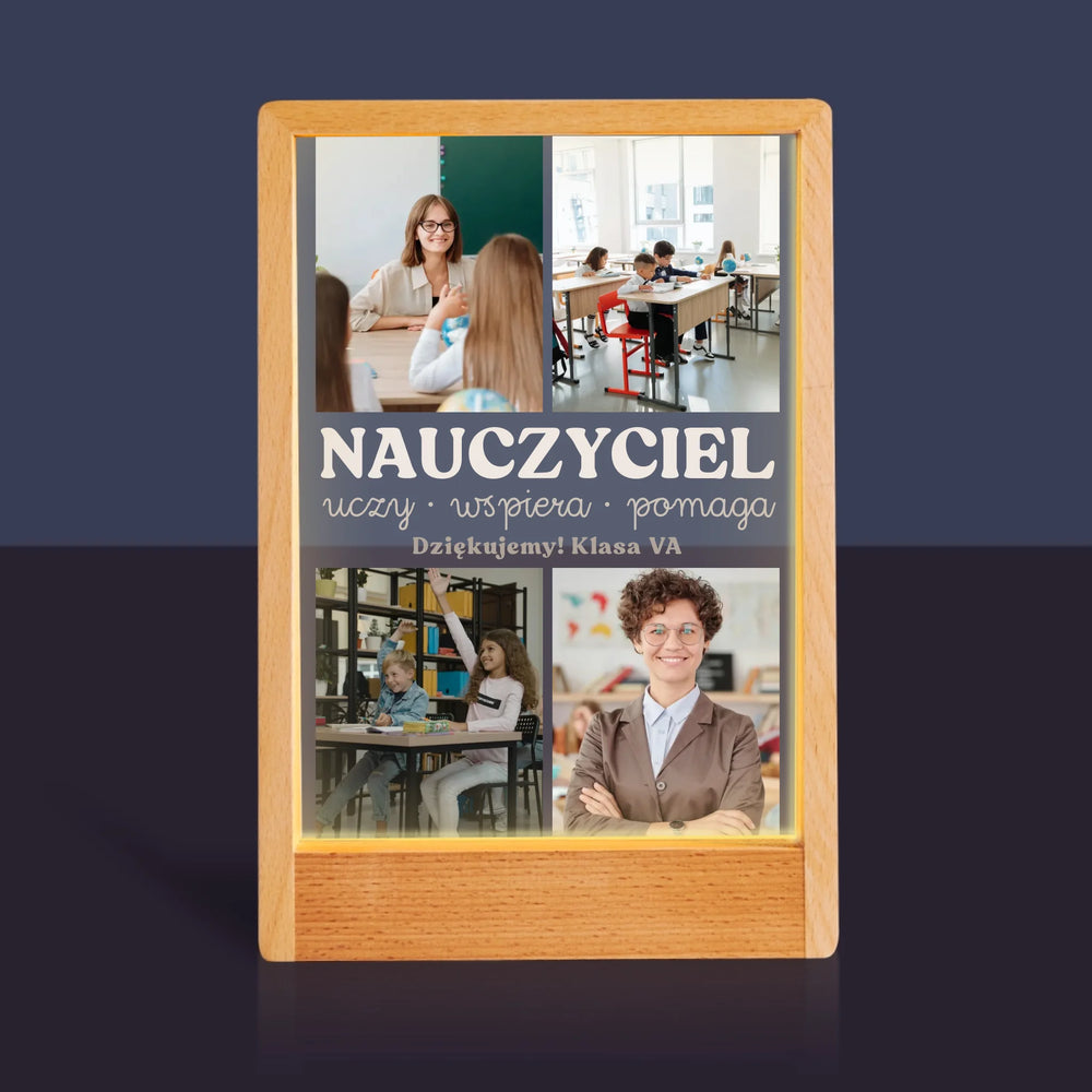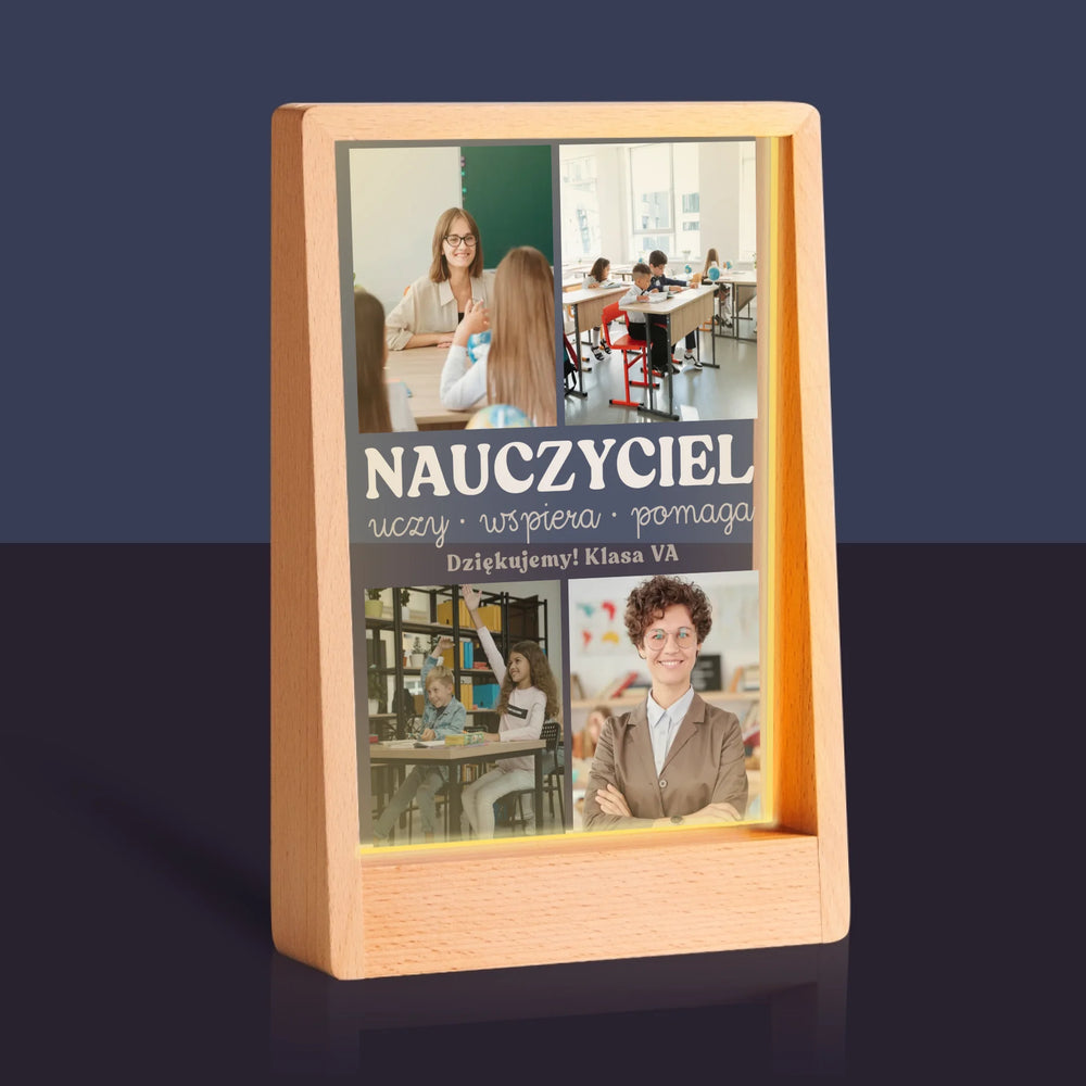 Fotokolaż: Wspaniały Nauczyciel - Wydruk na szkle akrylowym w ramce LED