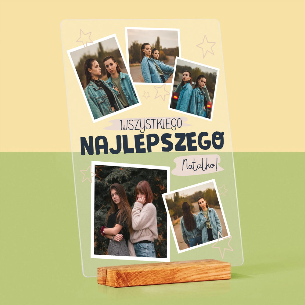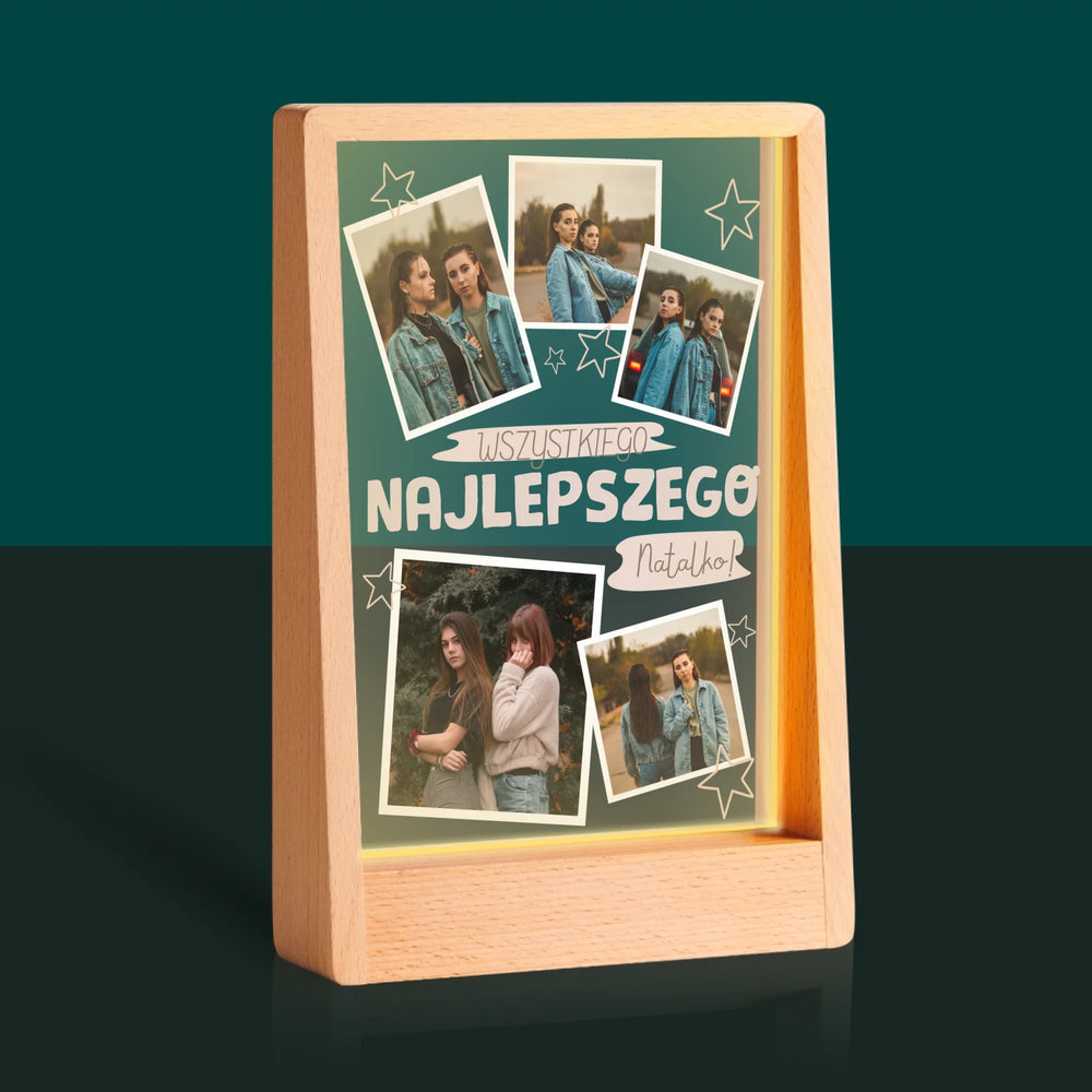 Fotokolaż: Wszystkiego Najlepszego Gwiazdki - Wydruk na szkle akrylowym w ramce LED