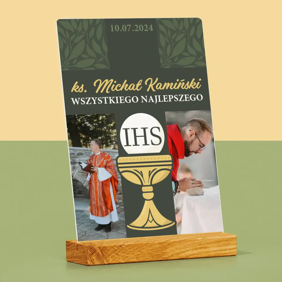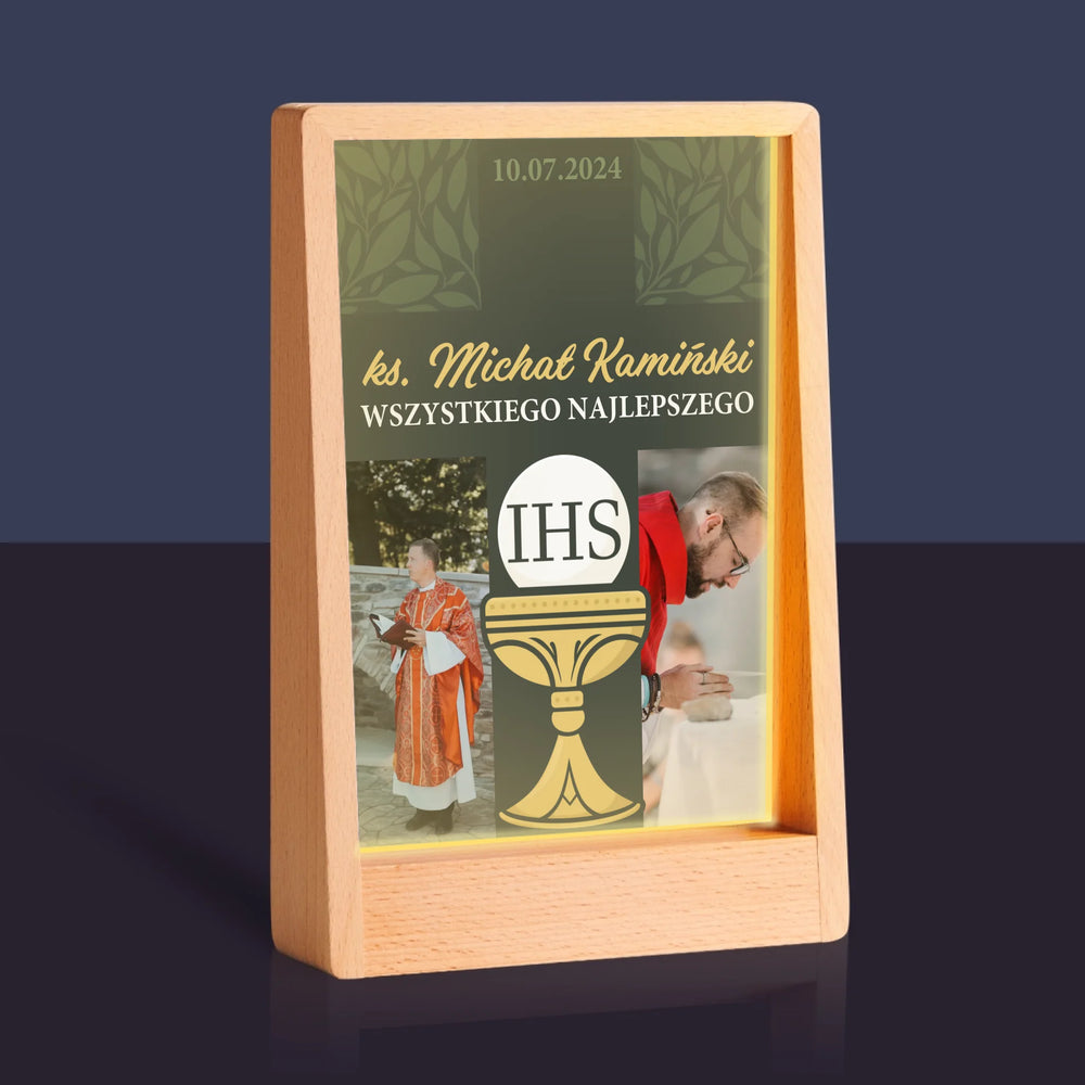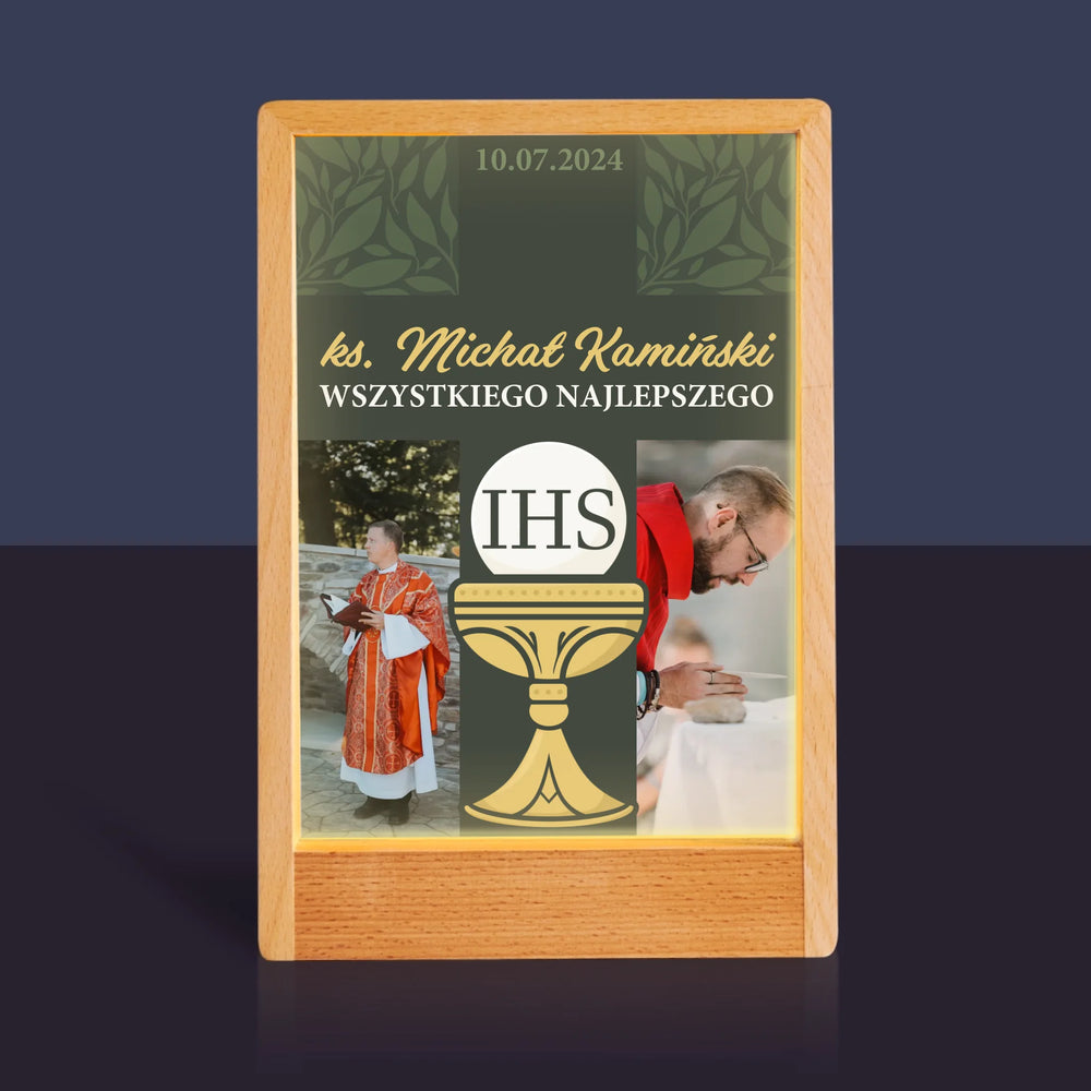 Fotokolaż: Wszystkiego Najlepszego Krzyż - Wydruk na szkle akrylowym w ramce LED