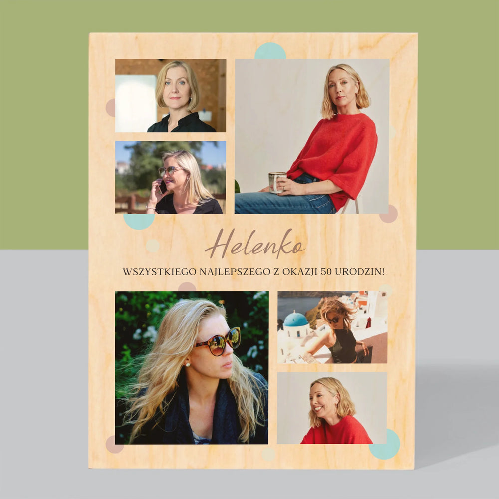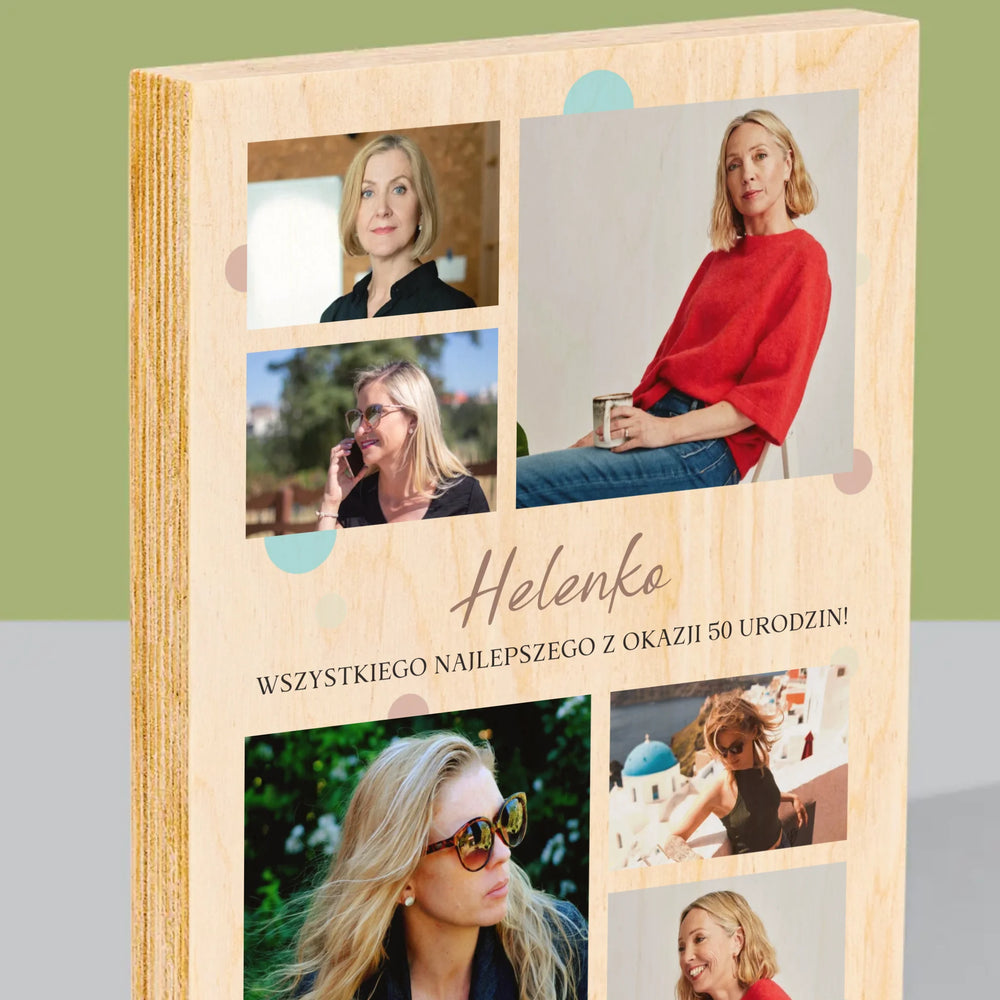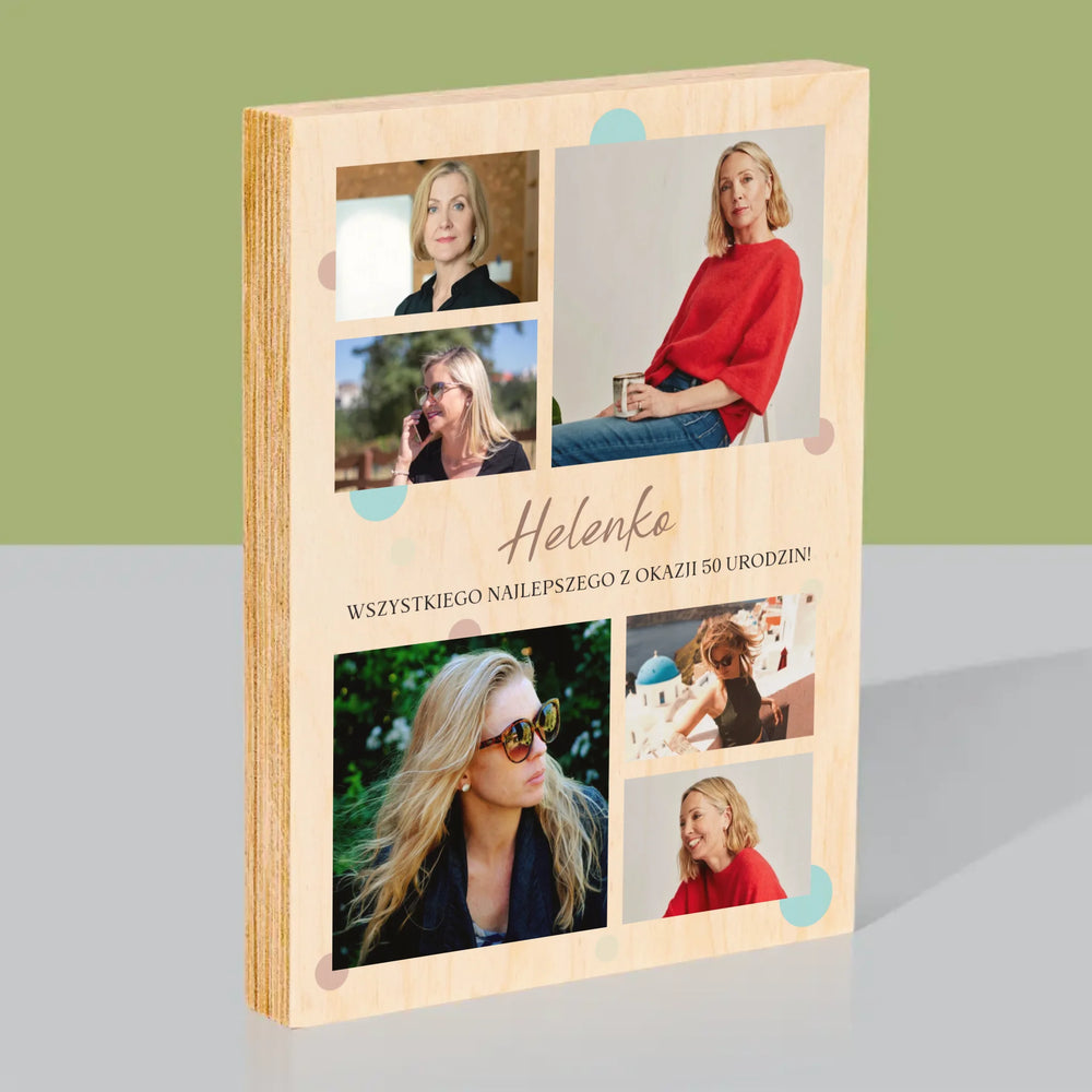 Fotokolaż: Wszystkiego Najlepszego Z Okazji 50 Urodzin - Wydruk na drewnie - Pion