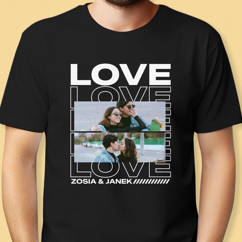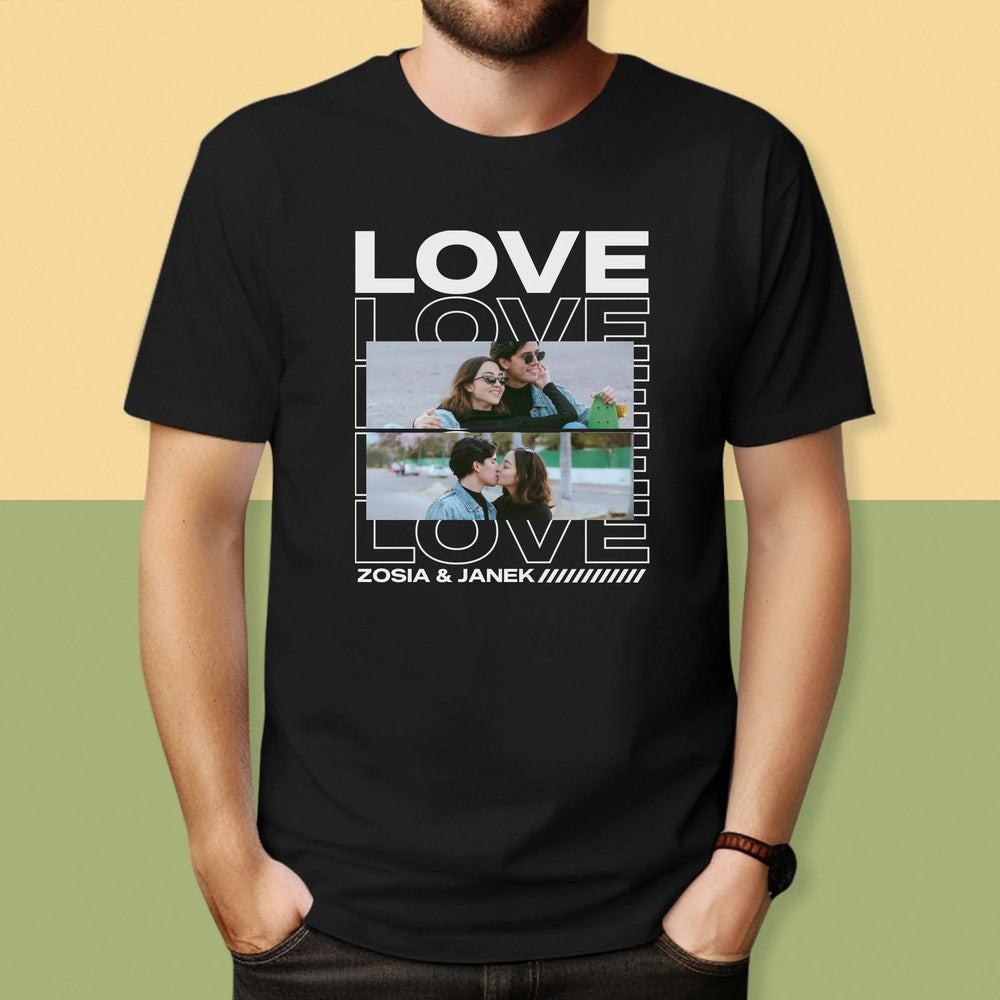 Fotokolaż: z Napisem Love - Personalizowana Koszulka Męska