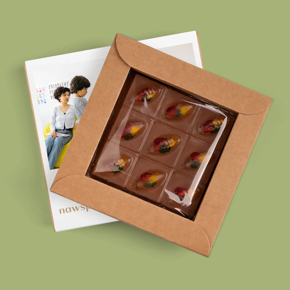 Czekolada dubajska z pysznym nadzieniem w eleganckim pudełku z wybraną przez Ciebie personalizacją.