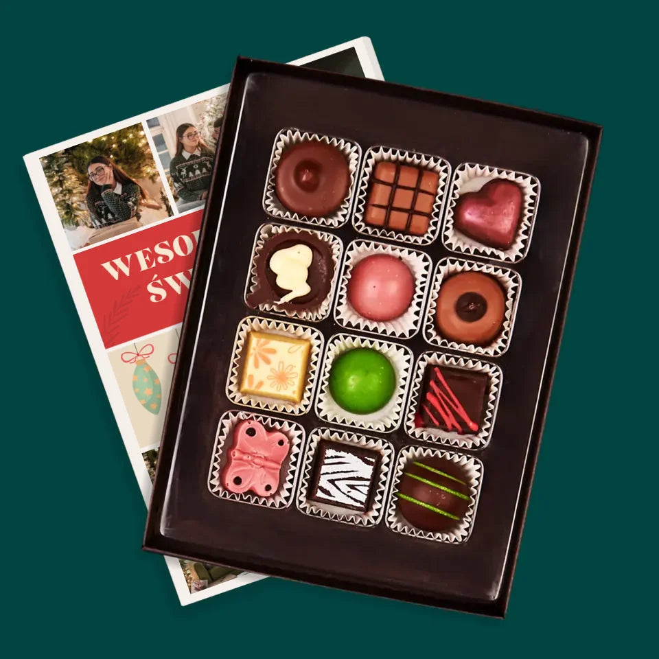 Pyszne praliny z belgijskiej czekolady w eleganckim pudełku z wybraną przez Ciebie personalizacją.
