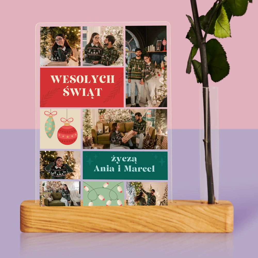 Fotokolaż: Zdjęcia Świąteczne - Wydruk na szkle akrylowym z różą