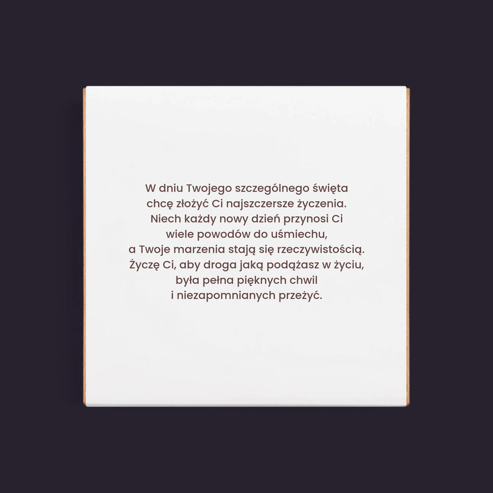 Efektowny nadruk z personalizacją znajduje się na specjalnej obwolucie prezentowej.