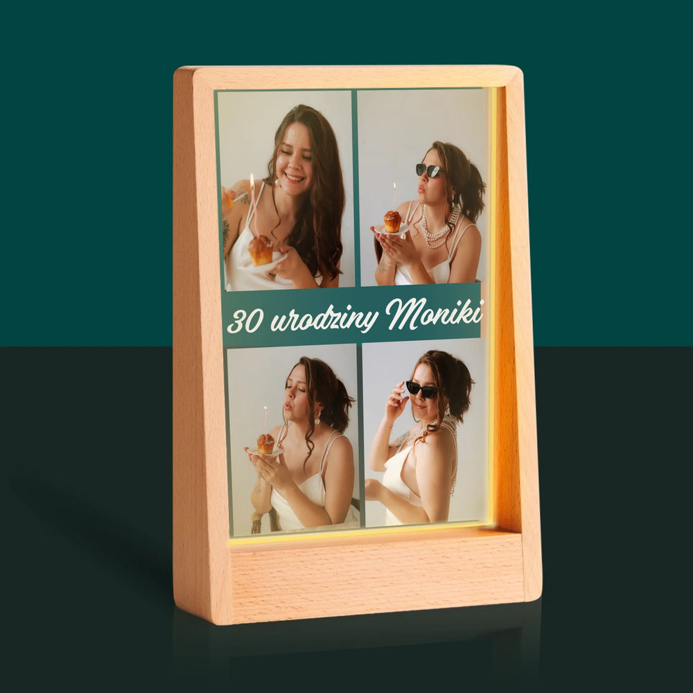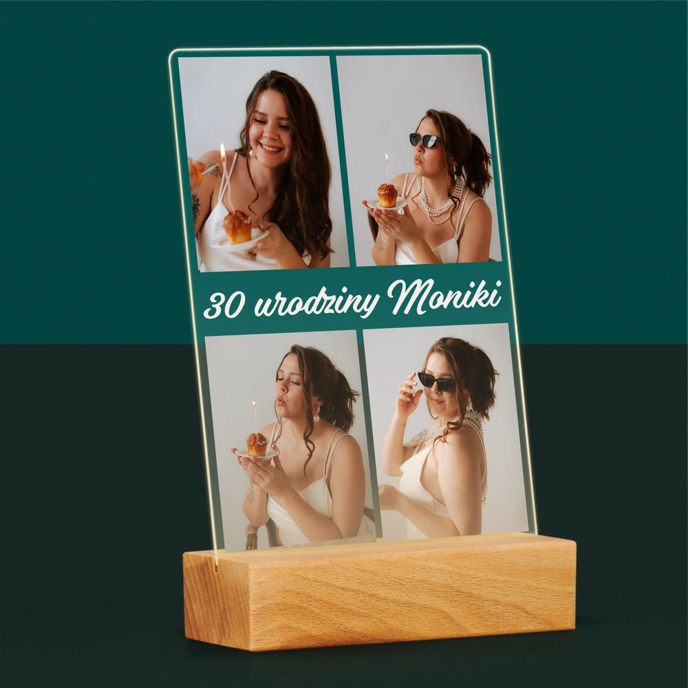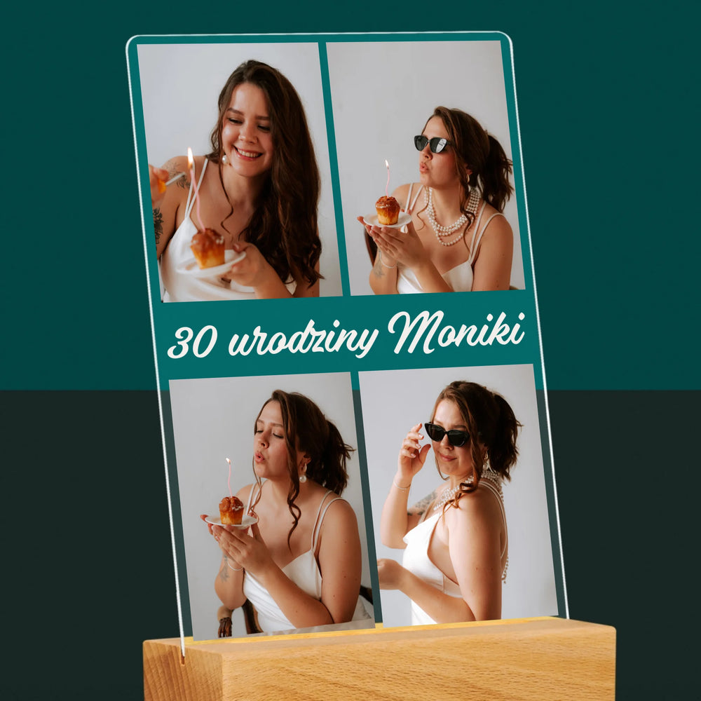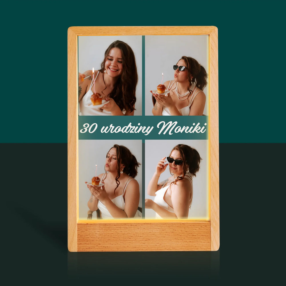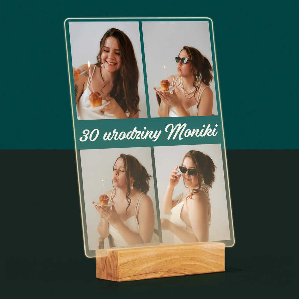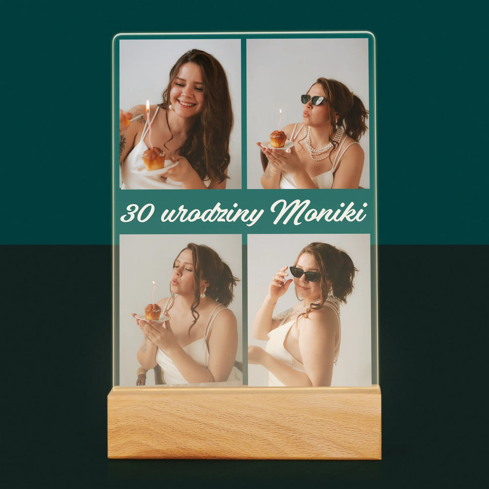 Fotokolaż: Zdjęcia Urodzinowe Życzenia - Wydruk na szkle akrylowym w ramce LED