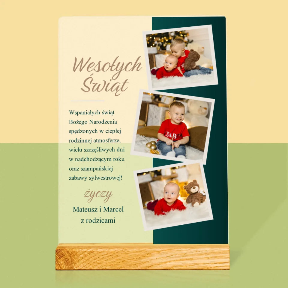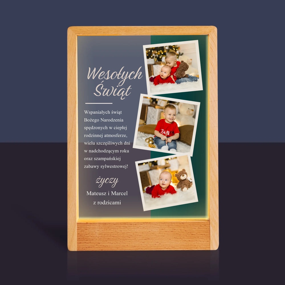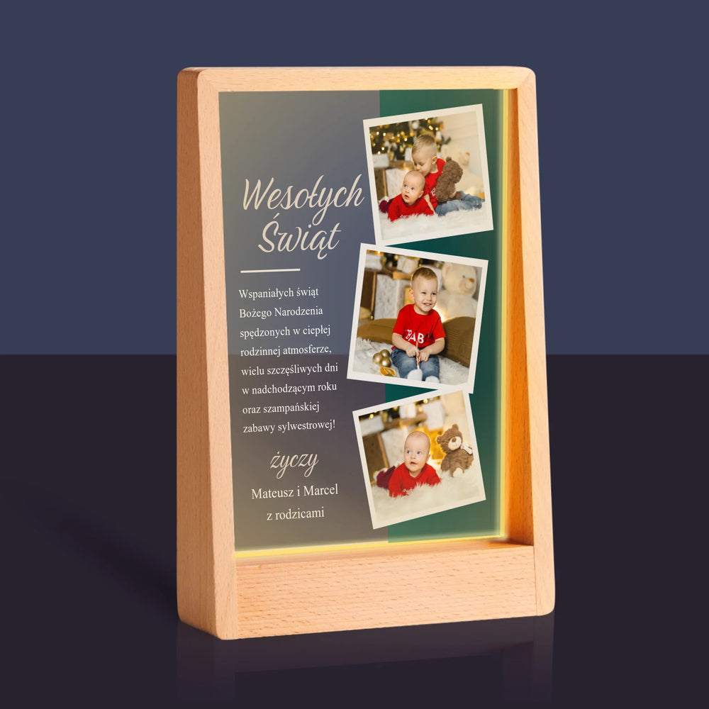 Fotokolaż: Życzenia Świąteczne - Wydruk na szkle akrylowym w ramce LED