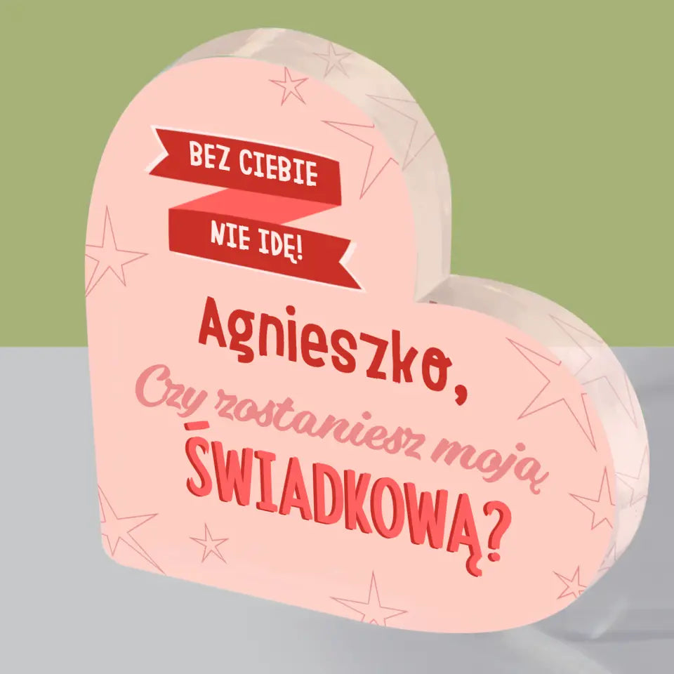 Imię i Podpis: Bez Ciebie Nie Idę - Blok akrylowy serce