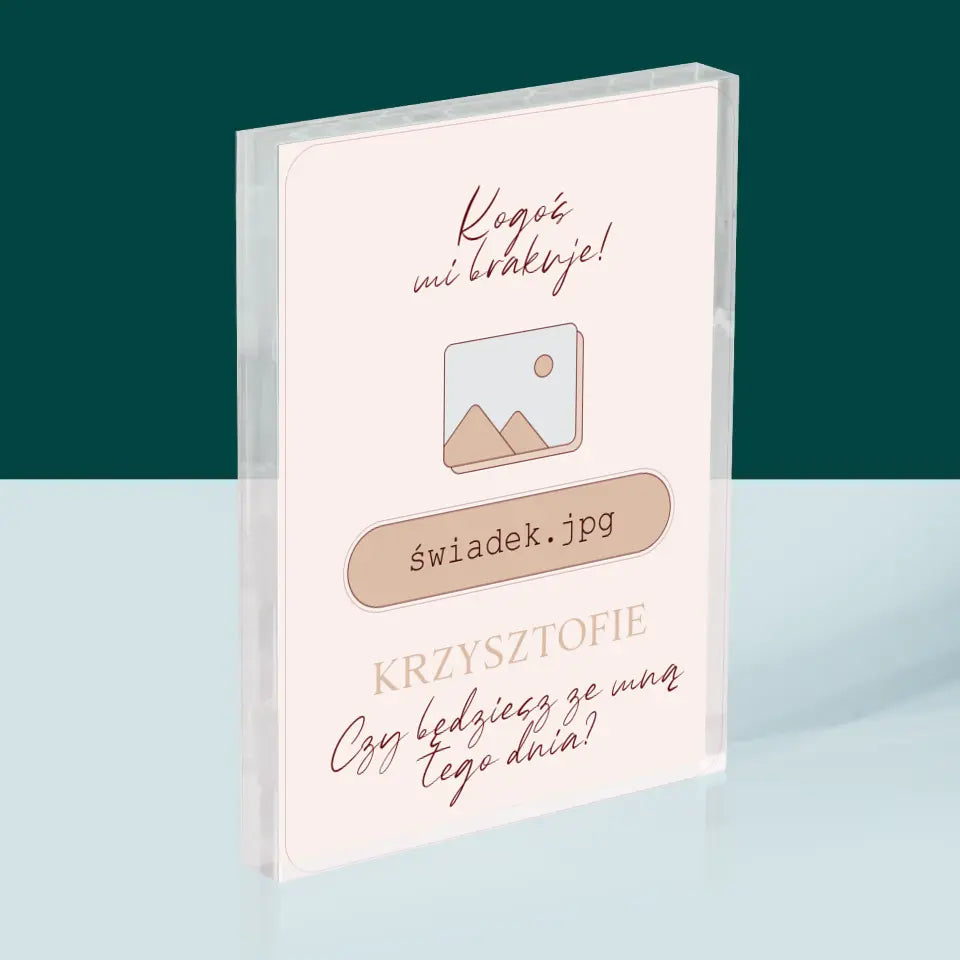 Imię i Podpis: Kogoś Mi Brakuje Świadek - Blok Akrylowy z Nadrukiem