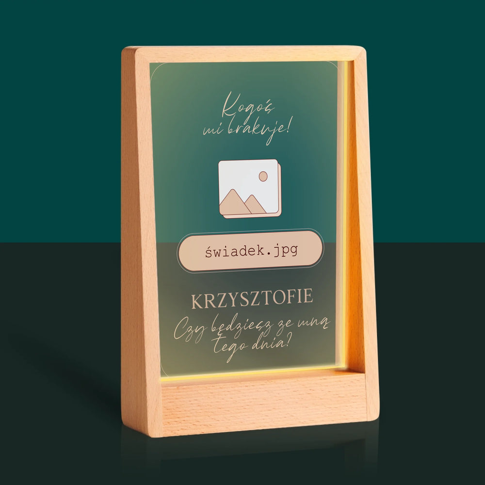 Imię i Podpis: Kogoś Mi Brakuje Świadek - Wydruk na szkle akrylowym w ramce LED