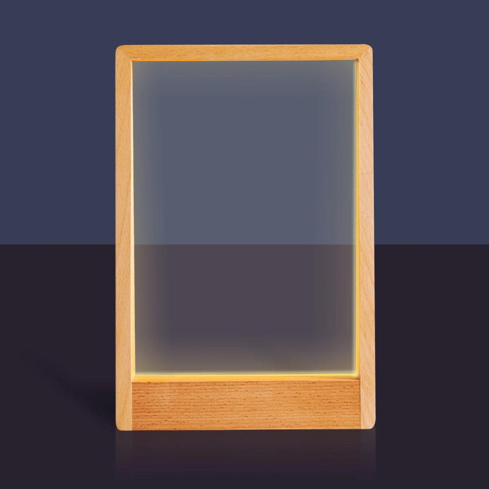 Wymiary szkła A4: 29,5 x 22 cm, wymiary drewnianej podstawki: 15 x 4,5 cm