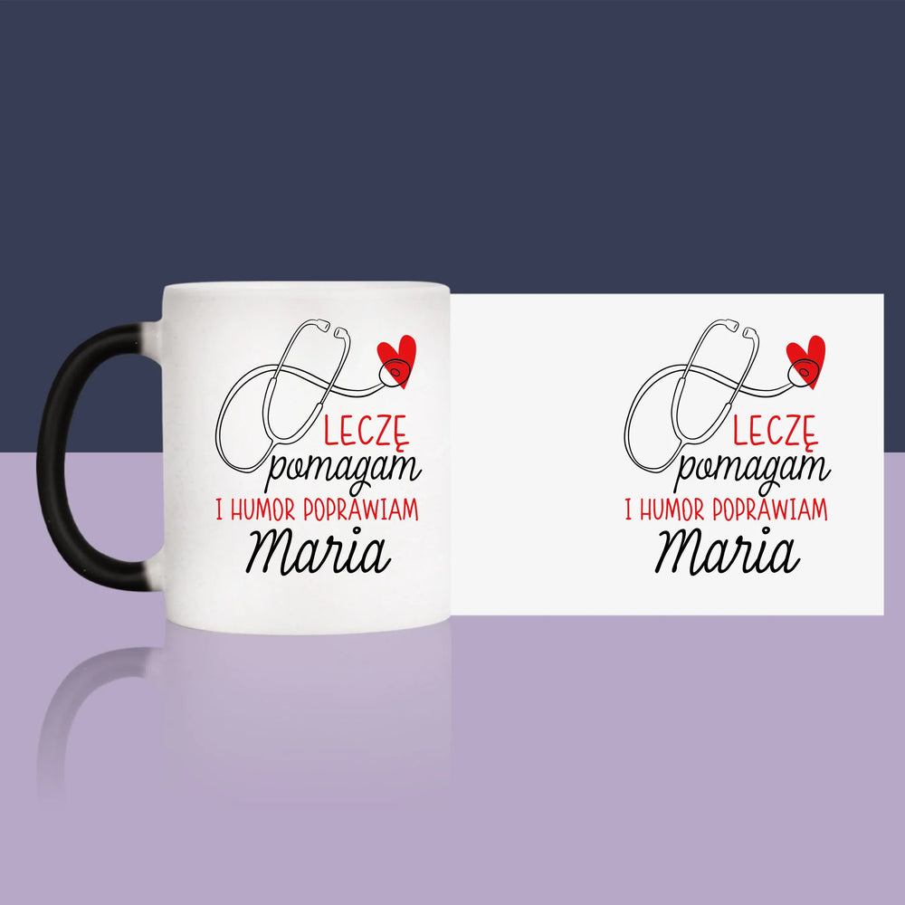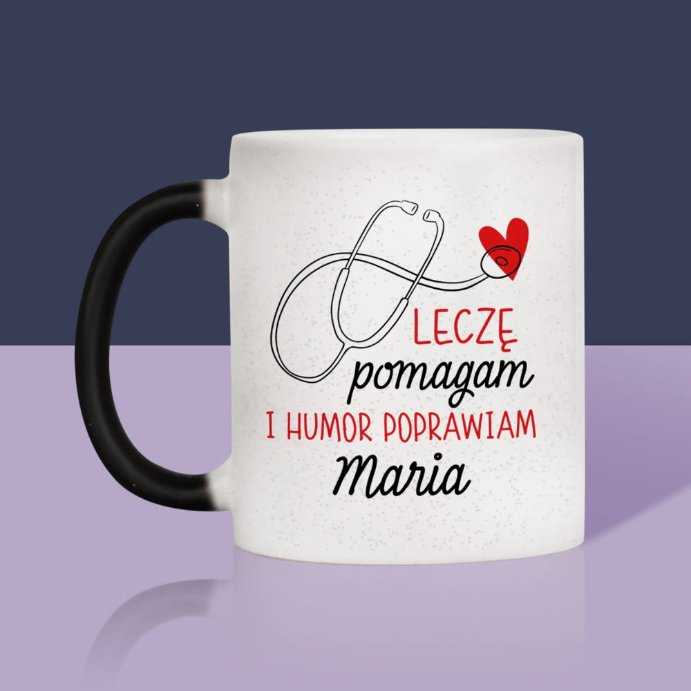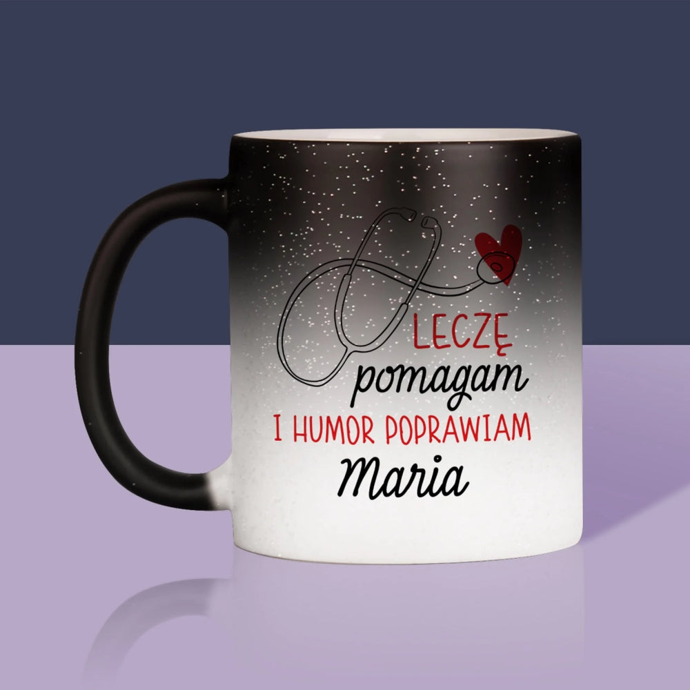 Imię I Podpis: Leczę Pomagam - Magiczny kubek z brokatem